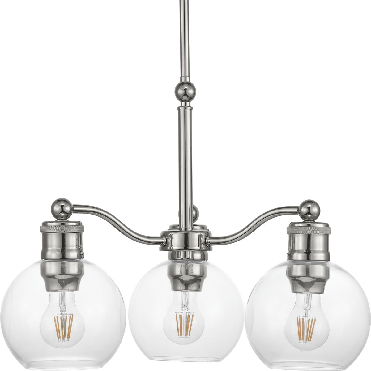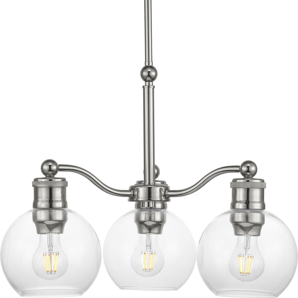 Illuminate your space with the Hansford 3-Light Polished Nickel Chandelier, a fusion of vintage charm and modern elegance. Perfect for any transitional setting, this stunning fixture boasts clear spherical shades and polished nickel finish, making it an exquisite centerpiece for your dining room, living area, or bedroom.