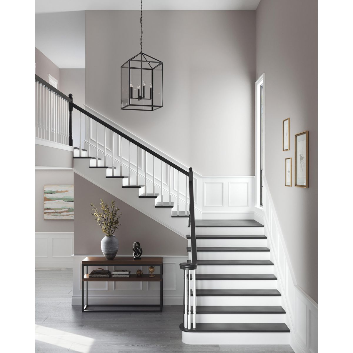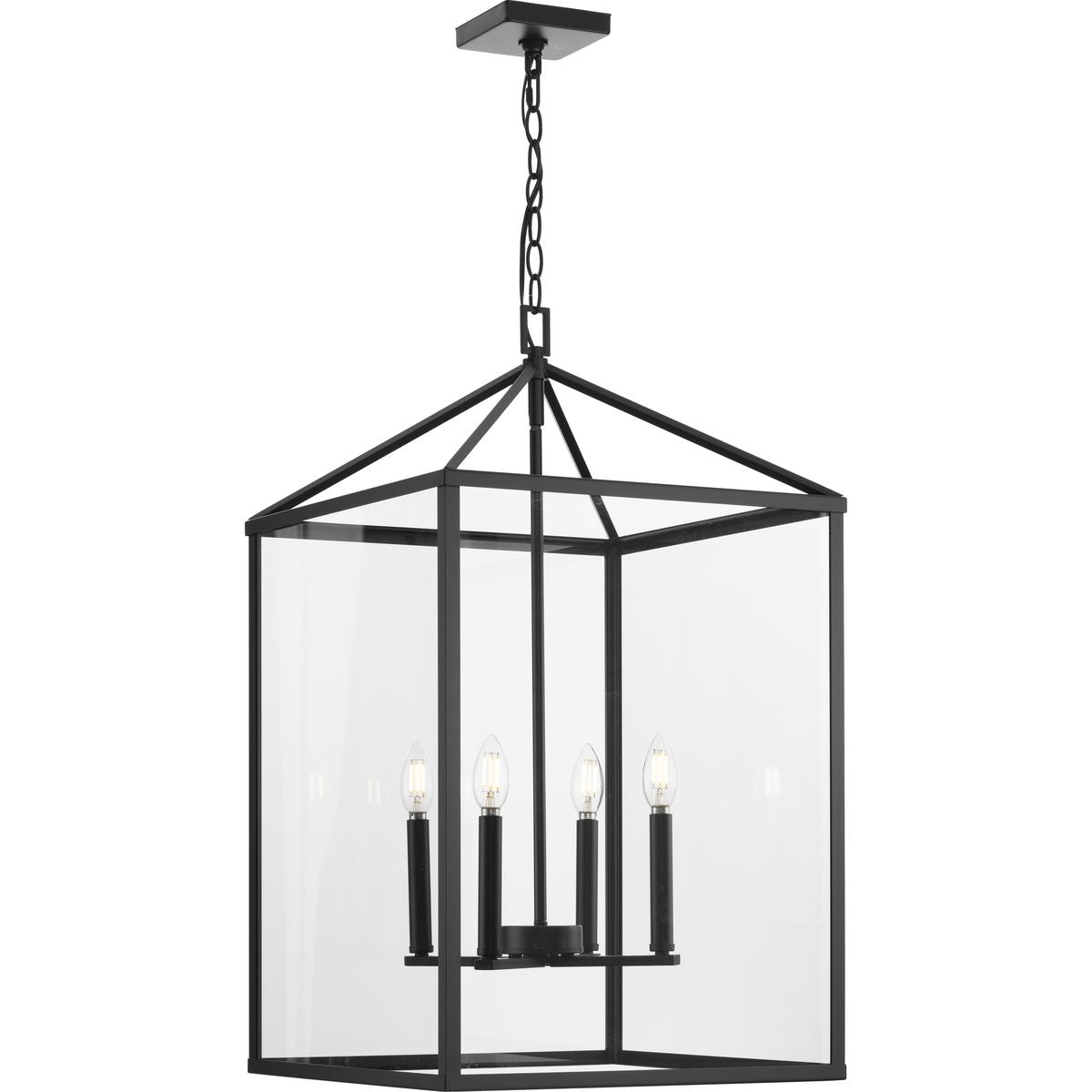 Illuminate your space with the Hillcrest 4-Light Matte Black Transitional Chandelier from Progress Lighting. This fixture pairs a sleek, angular frame with clear beveled glass, bringing a modern classic aesthetic to any room. Perfect for halls, foyers, and kitchens, it offers a versatile look that complements both Transitional and Modern Farmhouse styles.