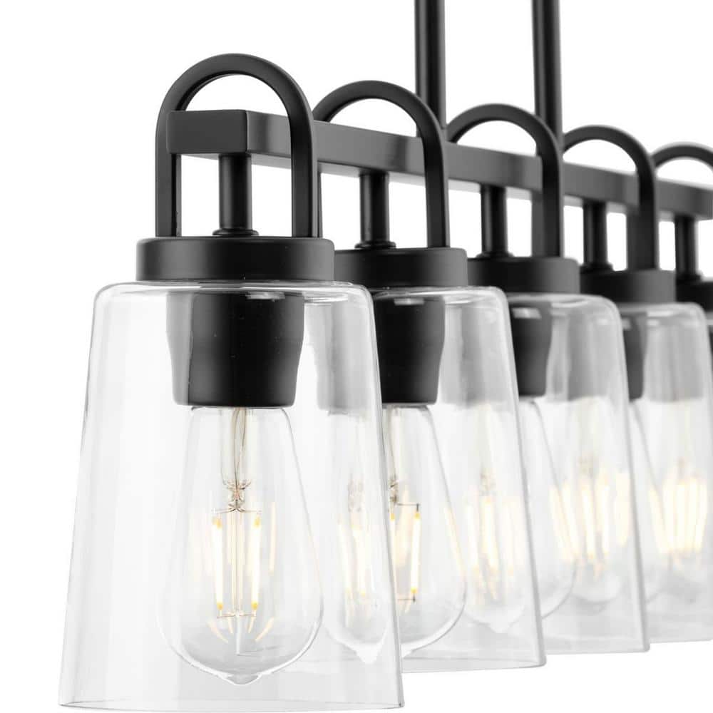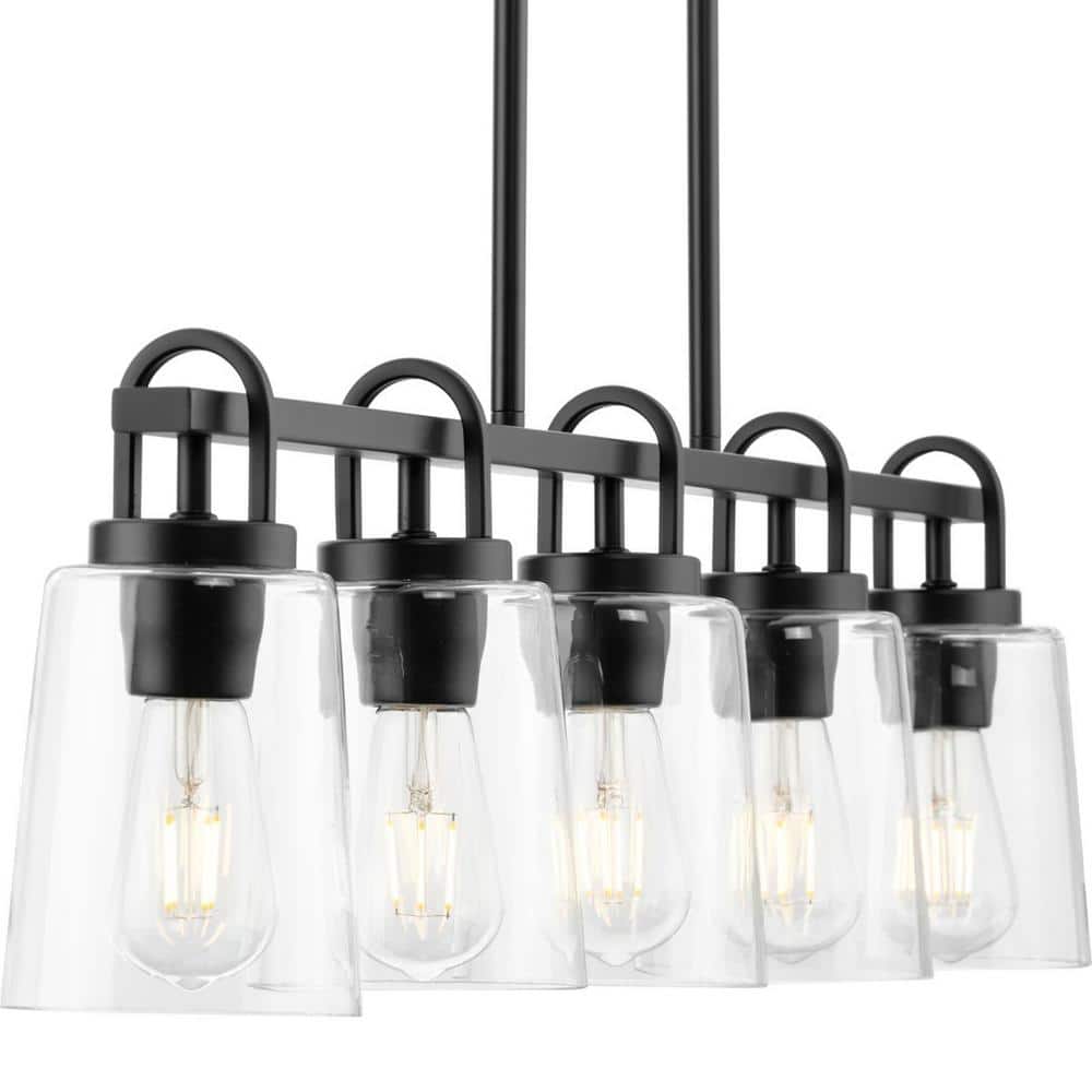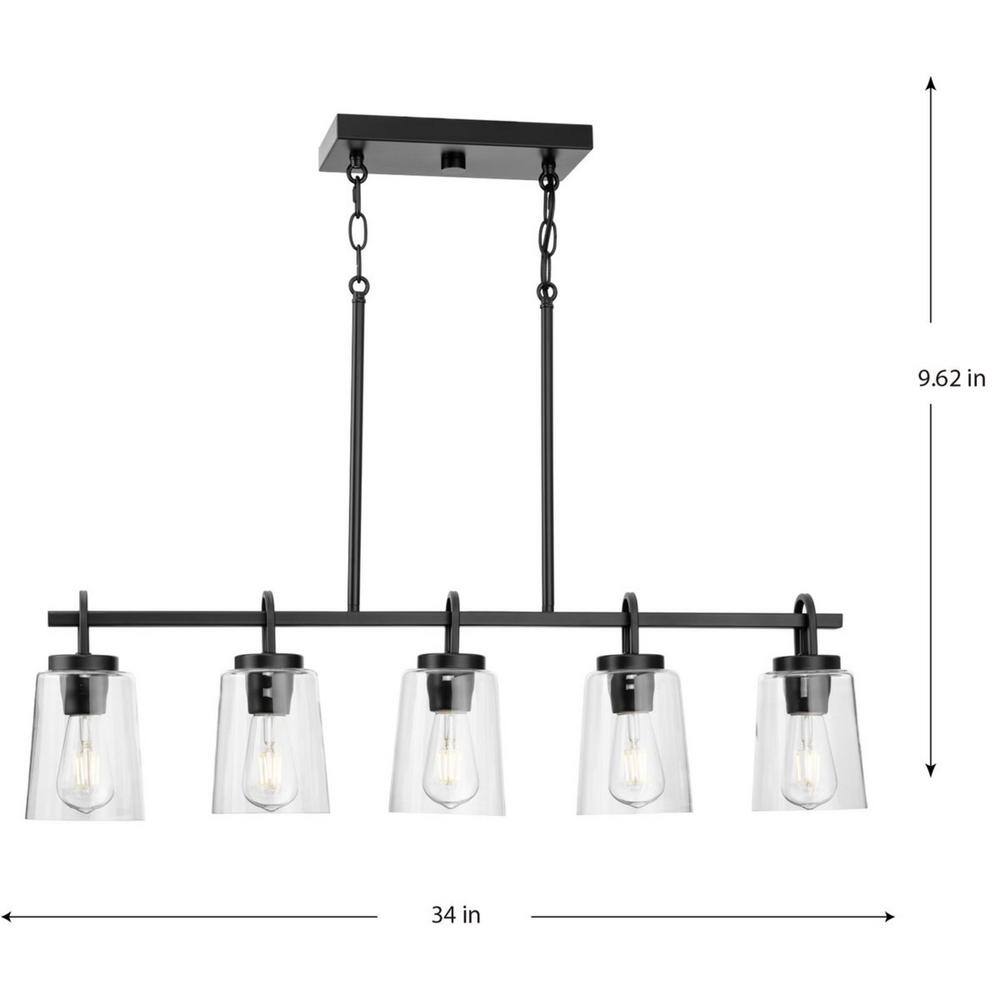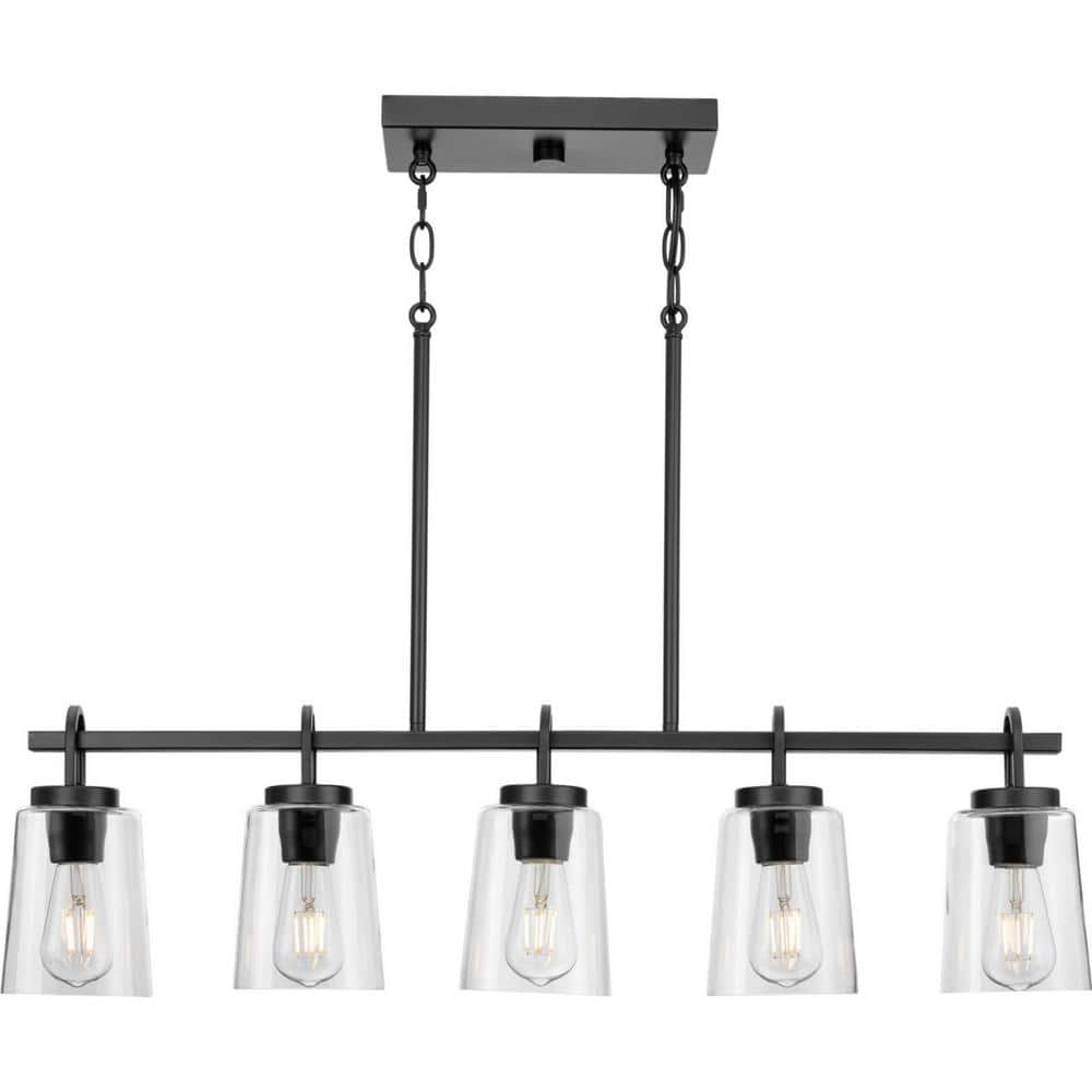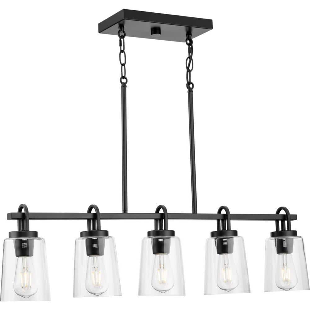 Progress Lighting Huntscroft Collection 34 in. 5-Light Matte Black Island Linear Chandelier for Bar, Kitchen and Dining Room