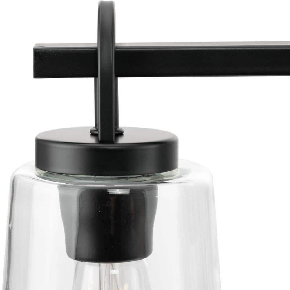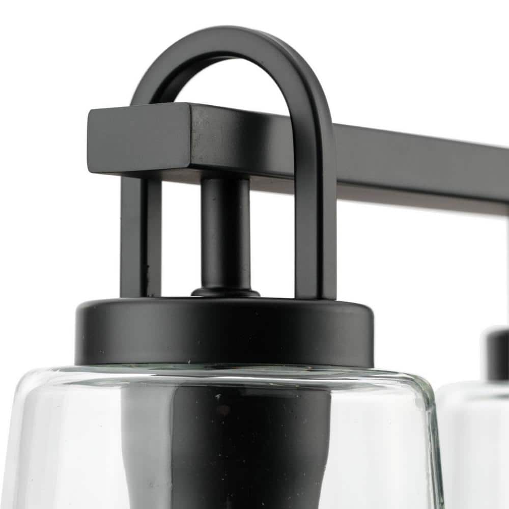 • Craftsman-inspired Design: Clear glass shades and straight matte black bars for a timeless look.