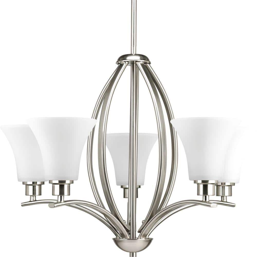 Progress Lighting Joy Collection 5-Light Brushed Nickel Etched White Inside Glass Traditional Chandelier Light