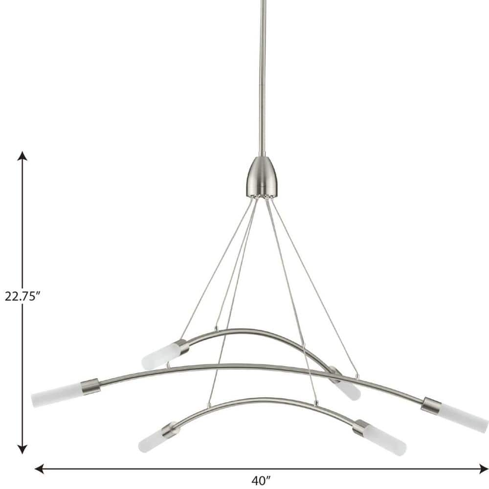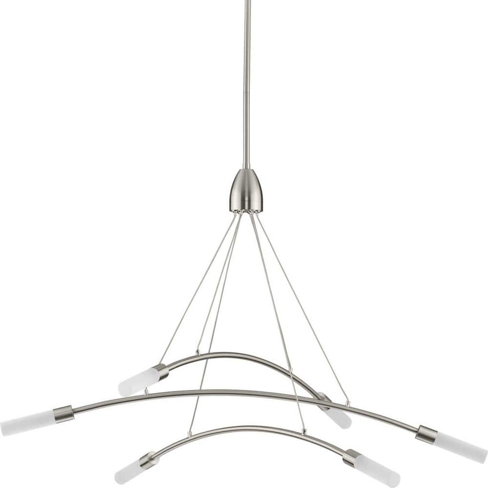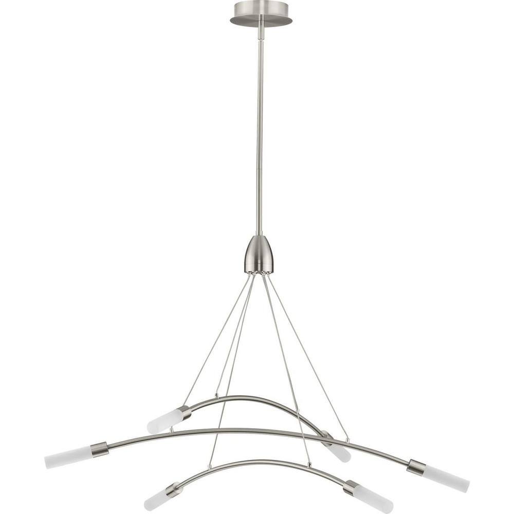 Progress Lighting Kylo LED 6-Light Brushed Nickel Frosted Glass LED Modern Chandelier Light