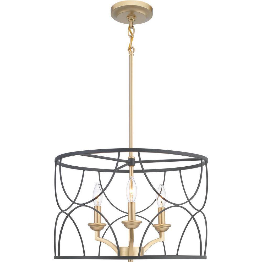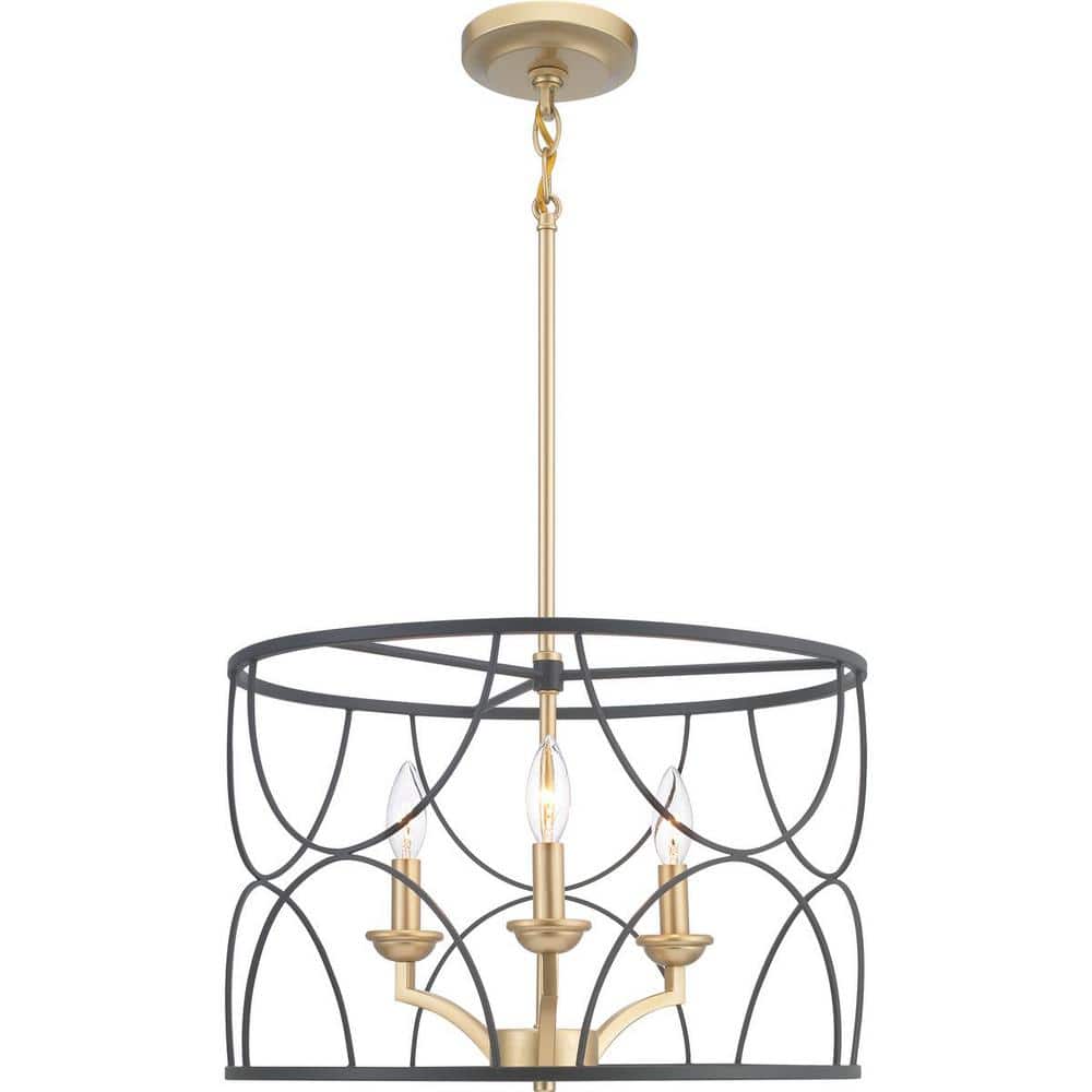 The Landree Collection 3-Light Matte Black Luxe Chandelier adds an element of sophistication to any space with its stunning geometric outer cage and vintage gold accents. Perfect for modern and luxury interiors, this statement piece offers an exquisite blend of aesthetics and functionality, capable of transforming your foyer, dining room, or living room.