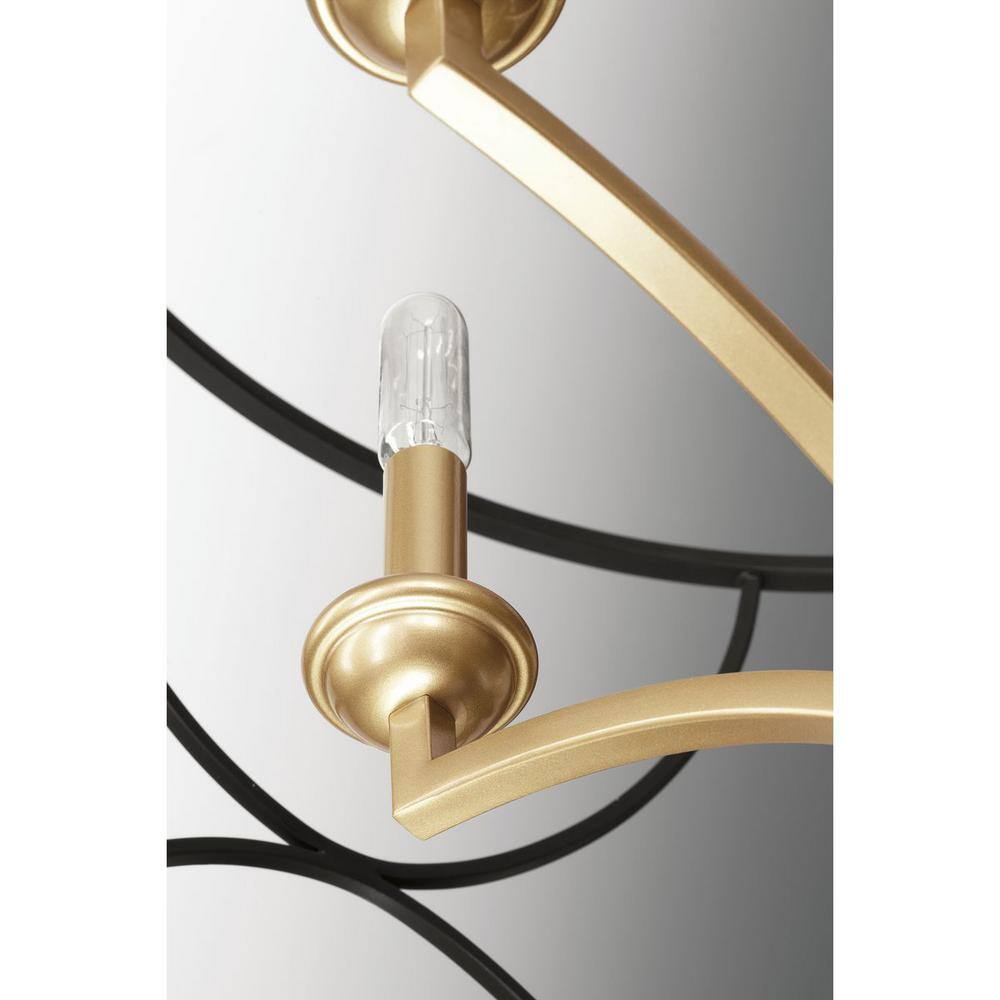 Embrace the ethereal elegance of the Landree Collection's captivating chandelier—a floating golden cluster enveloped by a bold black geometric frame, weaving narrative through light and shadow. Its striking design accentuates any spatial canvas, harmonizing well with both minimalist and opulent settings. Envision this piece as a pair, casting a symmetrical allure over an expansive dining table or gracing a lofty foyer with its dramatic stature. Truly indispensable, this chandelier is the quintessence of artful illumination, transforming any abode into a sanctuary of modern luxury.