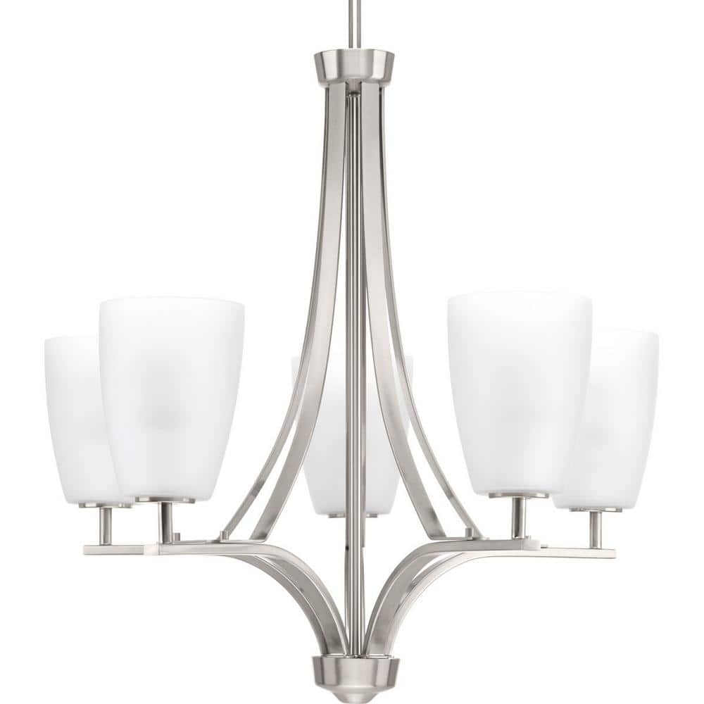 Progress Lighting Leap Collection 5-Light Brushed Nickel Etched Opal Glass Modern Chandelier Light