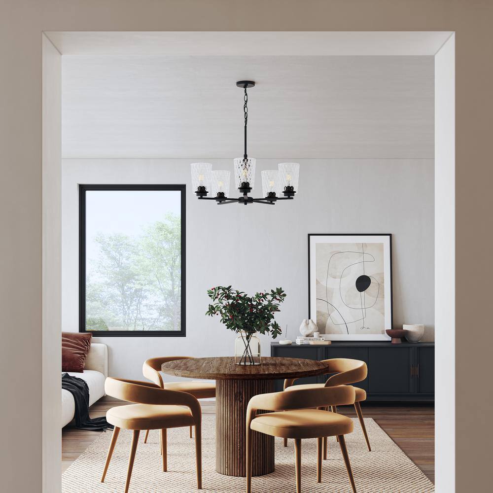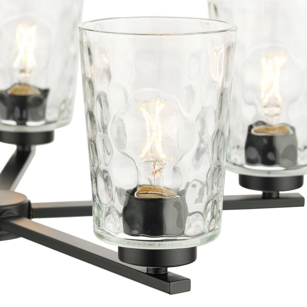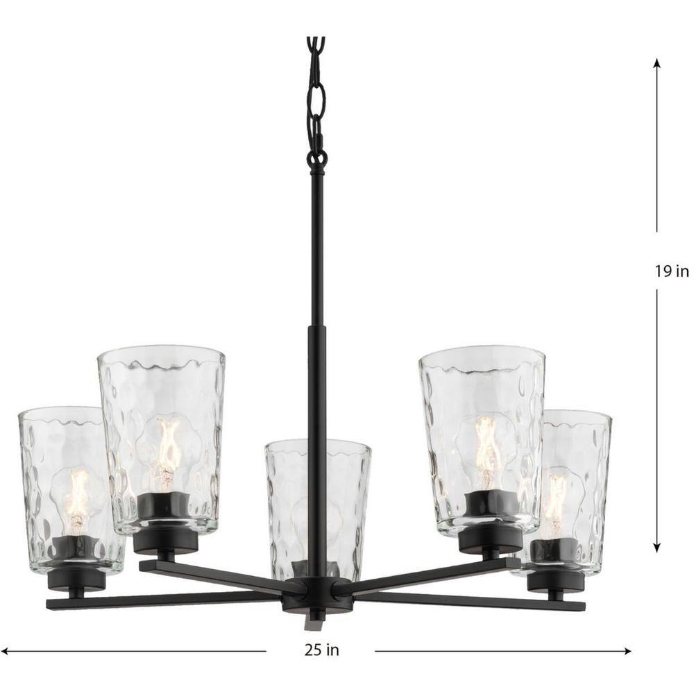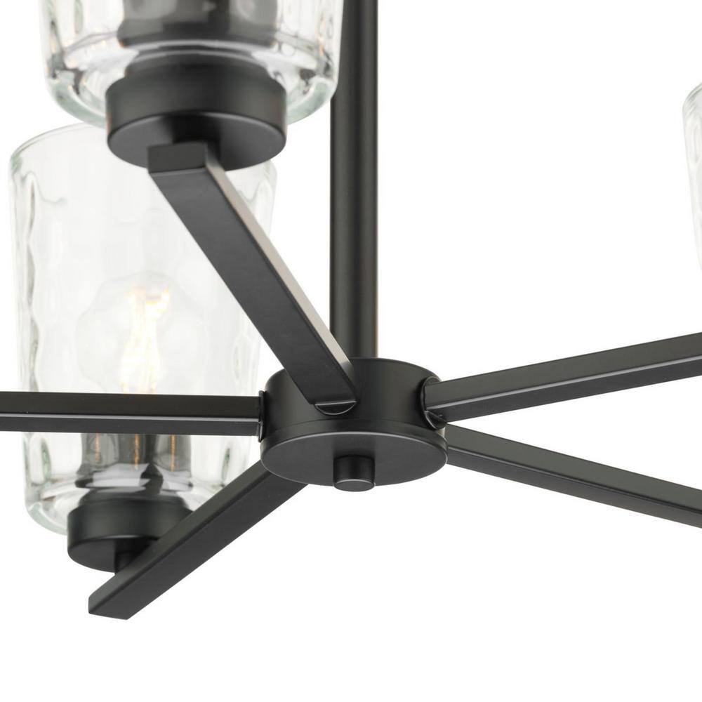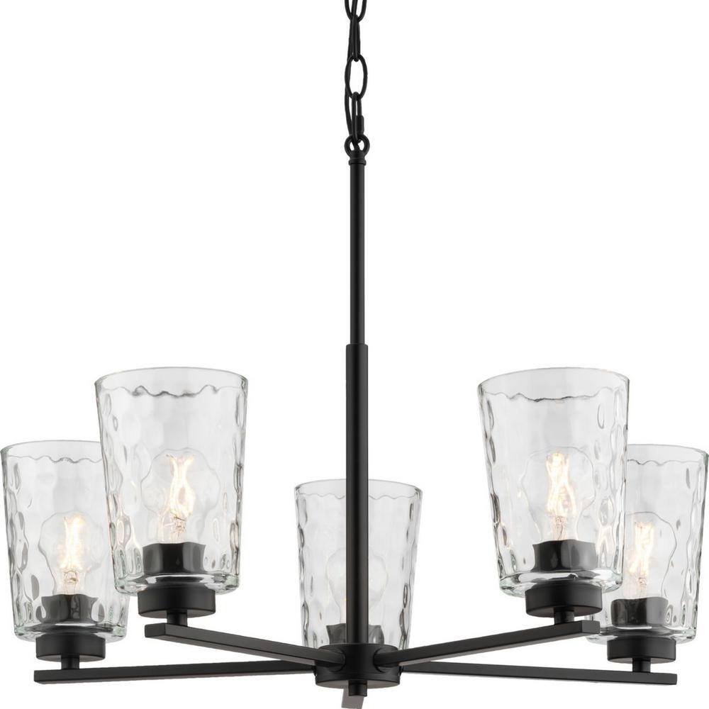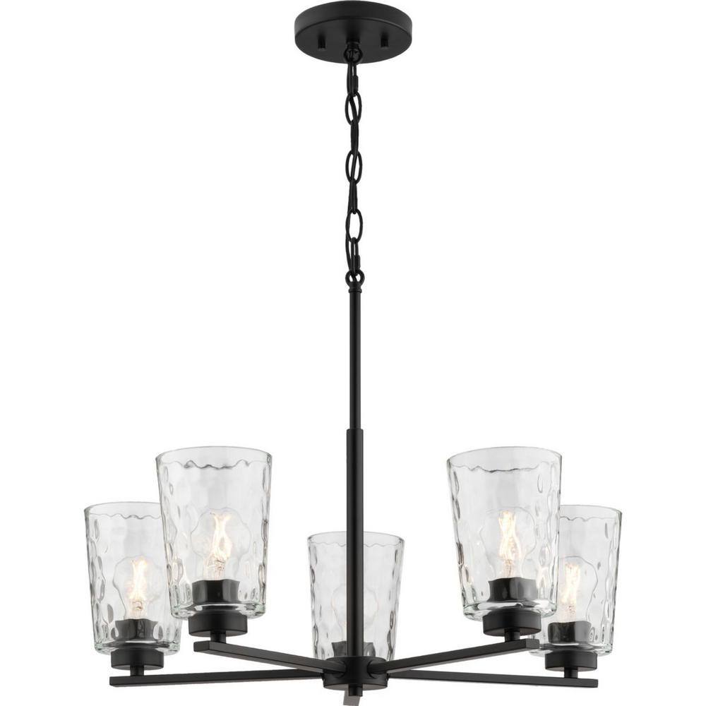 Progress Lighting Mauzy Collection 5-Light Matte Black Transitional Chandelier with Clear Water Glass Shade for Dining Room