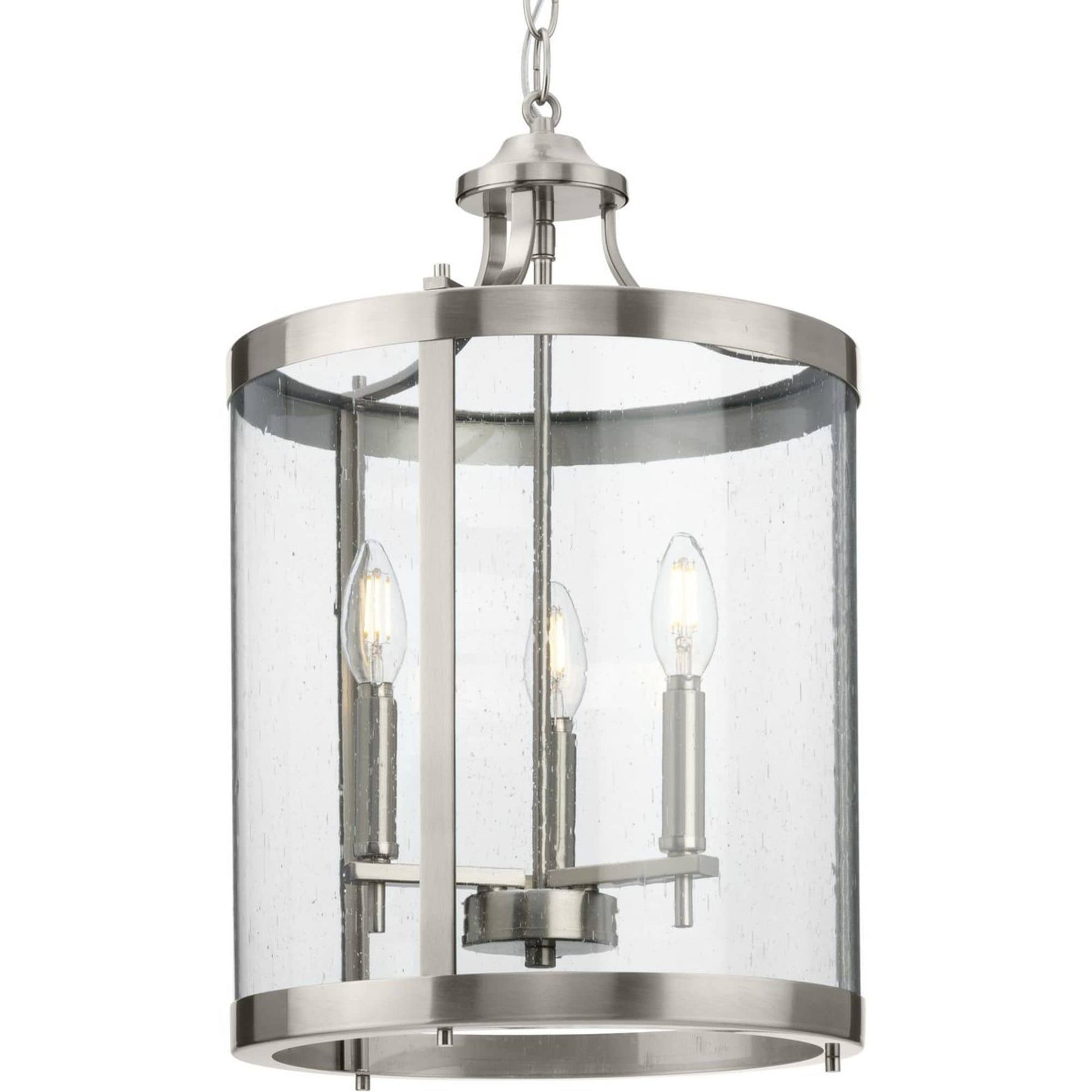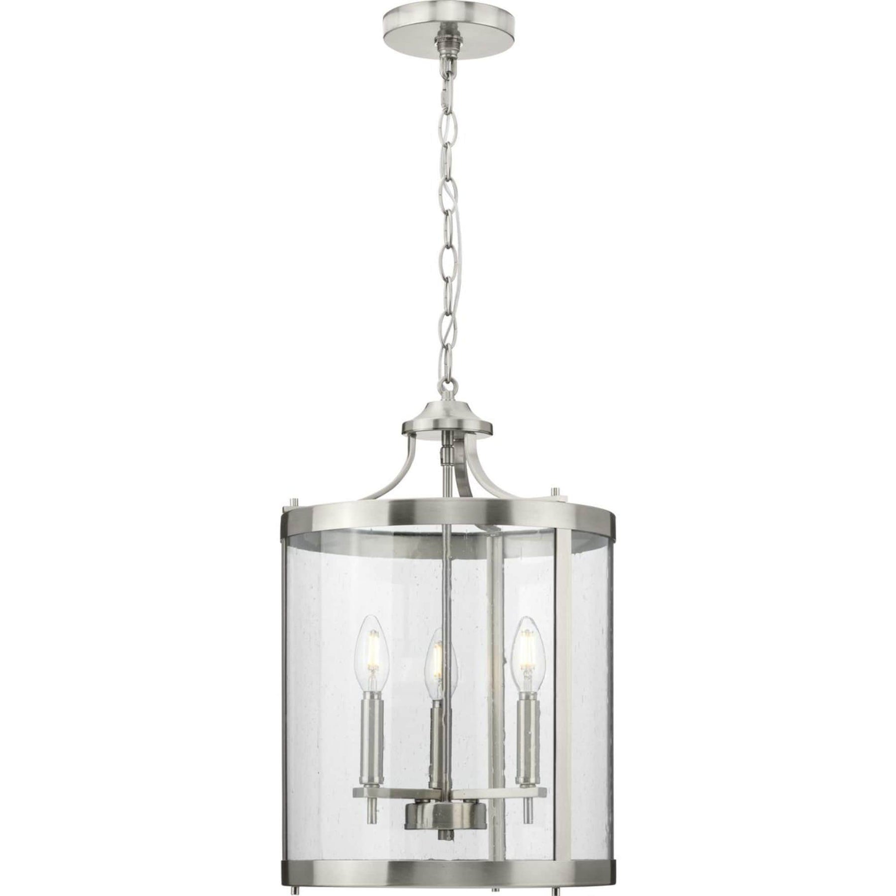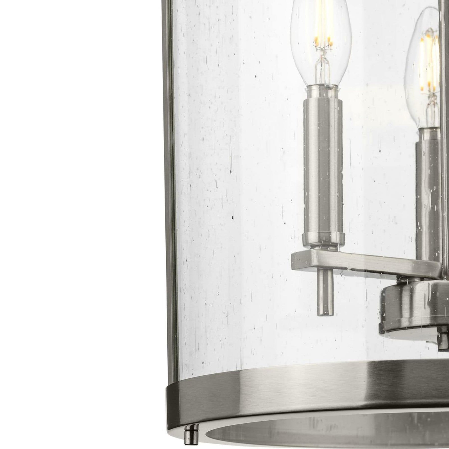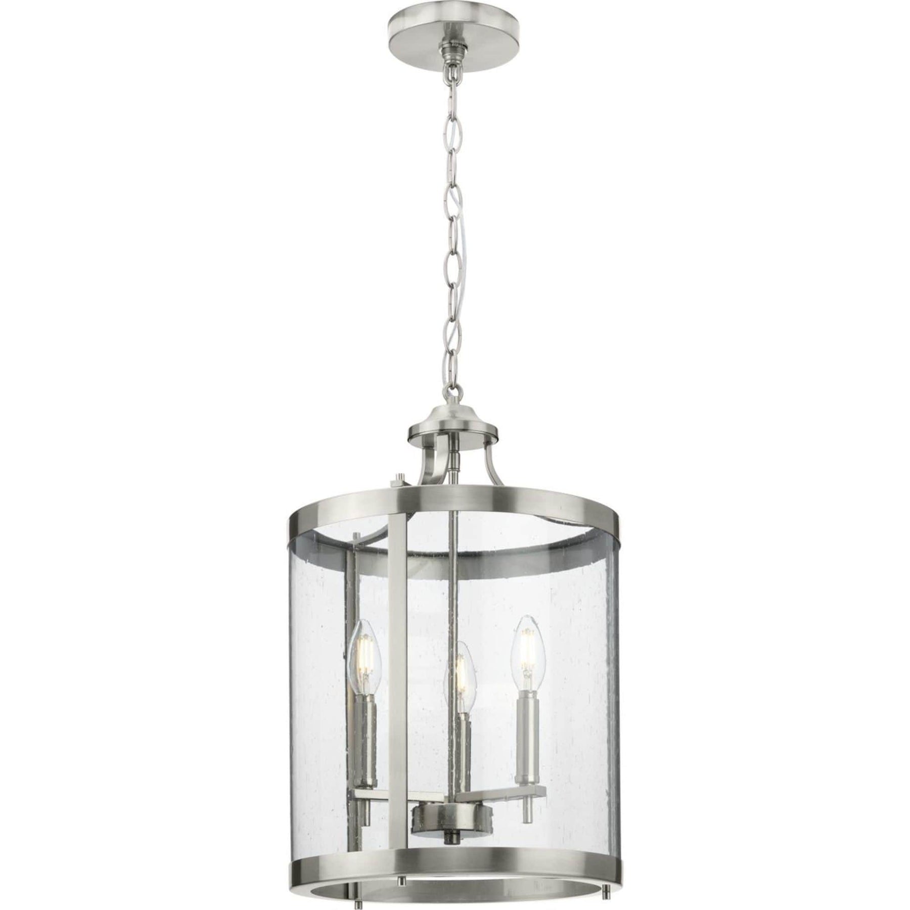 Progress Lighting Morehouse 3-Light Brushed Nickel Transitional Seeded Glass Cylinder Medium Hanging Pendant Light