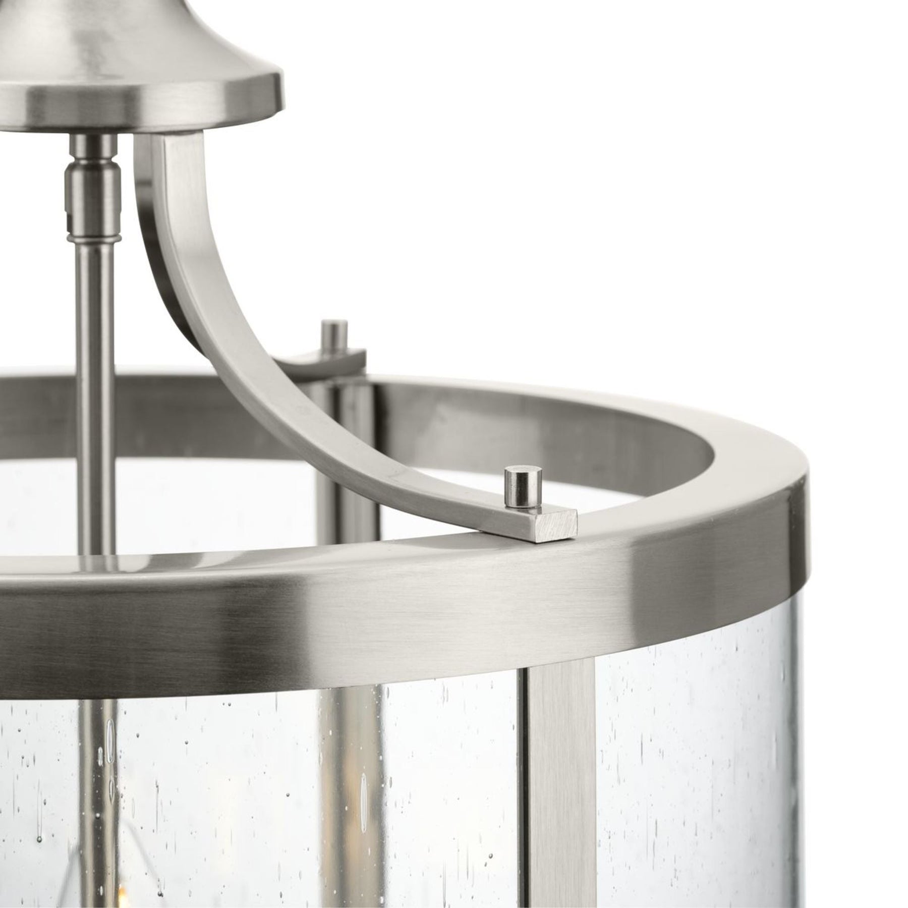• Elegant design: Features a brushed nickel finish with clear seeded glass shades for a touch of grace.