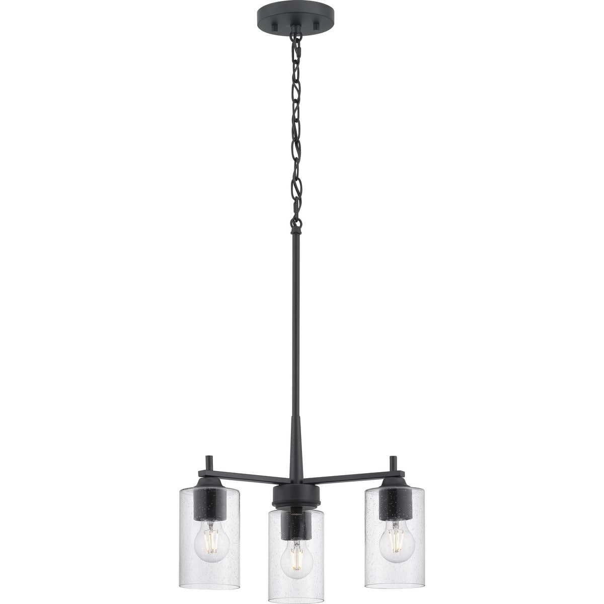 The Morehouse 3-Light Matte Black Chandelier from Progress Lighting seamlessly blends contemporary elegance with traditional charm. Its slim silhouette and elegant seeded glass shades offer a subtle sparkle, complementing any décor style in breakfast nooks, dining rooms, or bedrooms. Transition your space with this captivating chandelier that embodies both form and function.
