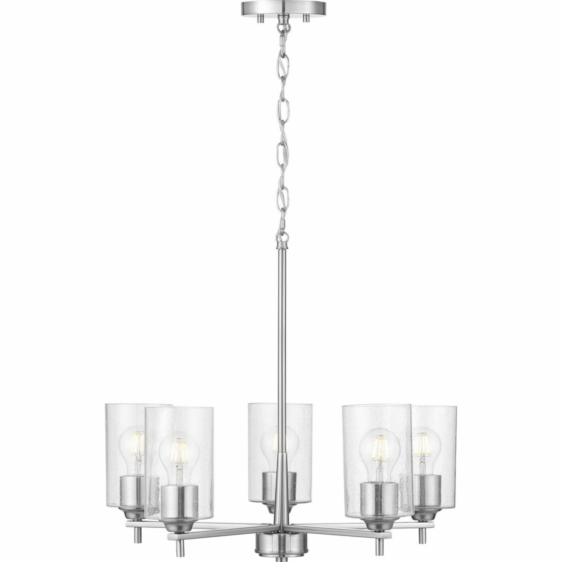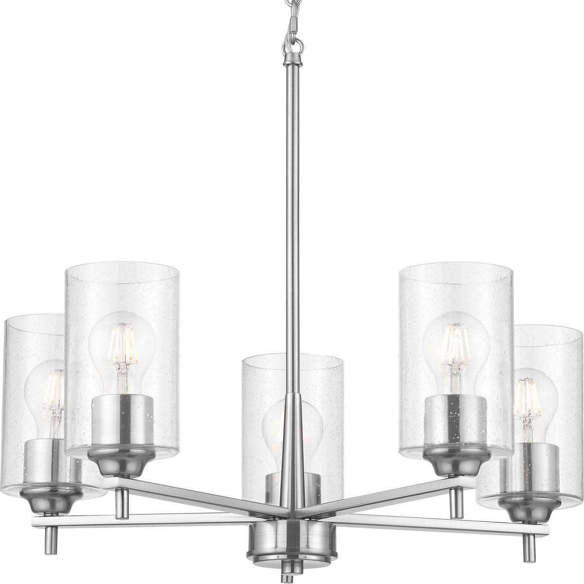 Illuminate your home with the stunning Morehouse 5-Light Chandelier by Progress Lighting. This chandelier merges contemporary design with traditional seeded glass shades, creating a truly transitional piece that elevates any dining area, bedroom, or foyer with its brushed nickel finish and airy design.