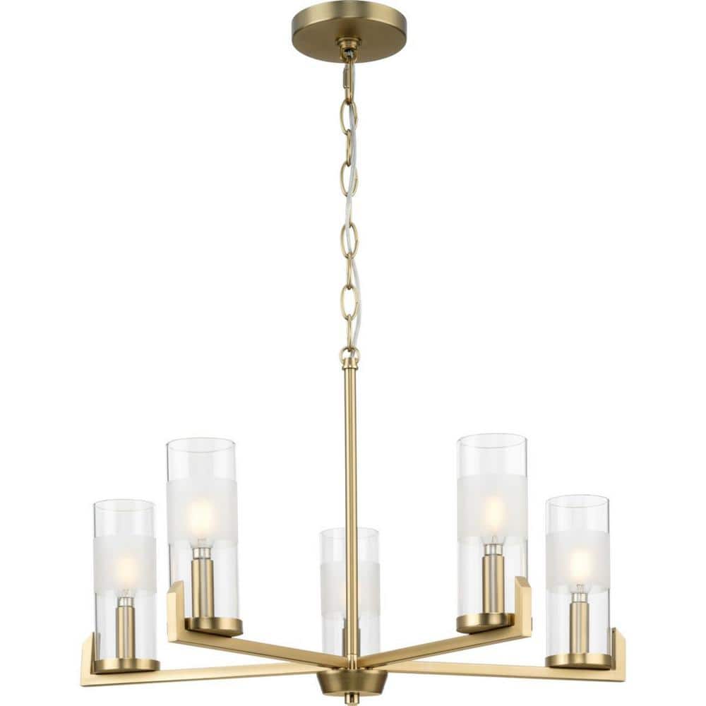Progress Lighting Pellum Collection 25 in. 5-Light Brushed Gold Chandelier for Breakfast Nook, Kitchen and Living Room