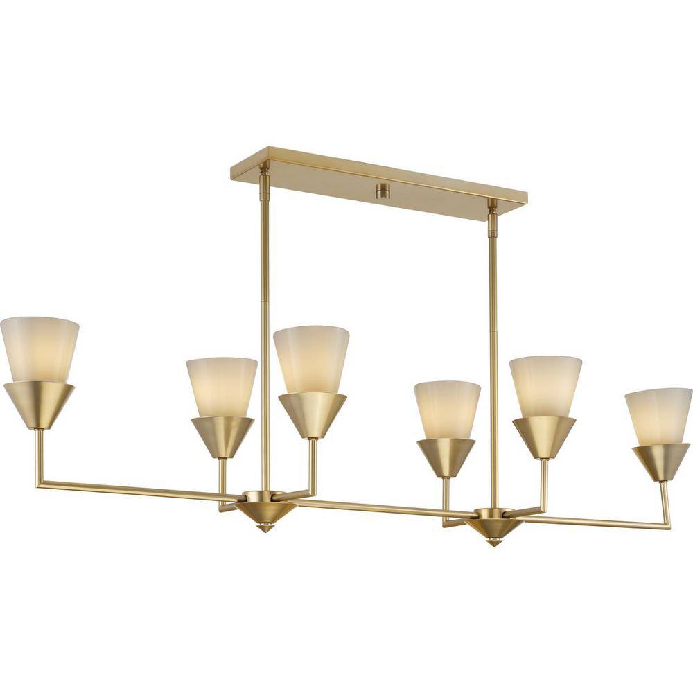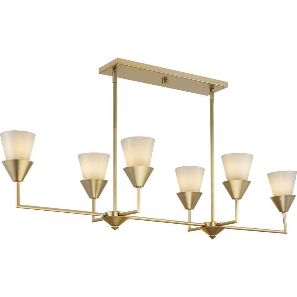 Illuminate your space with the Pinellas 60-Watt 6-Light Soft Gold Luxe Industrial Island Light. This striking fixture features opal glass shades and a soft gold finish, blending industrial design with contemporary elegance. Its unique dual conical shape casts a lovely ambient glow, making it the perfect centerpiece for kitchens or dining areas.