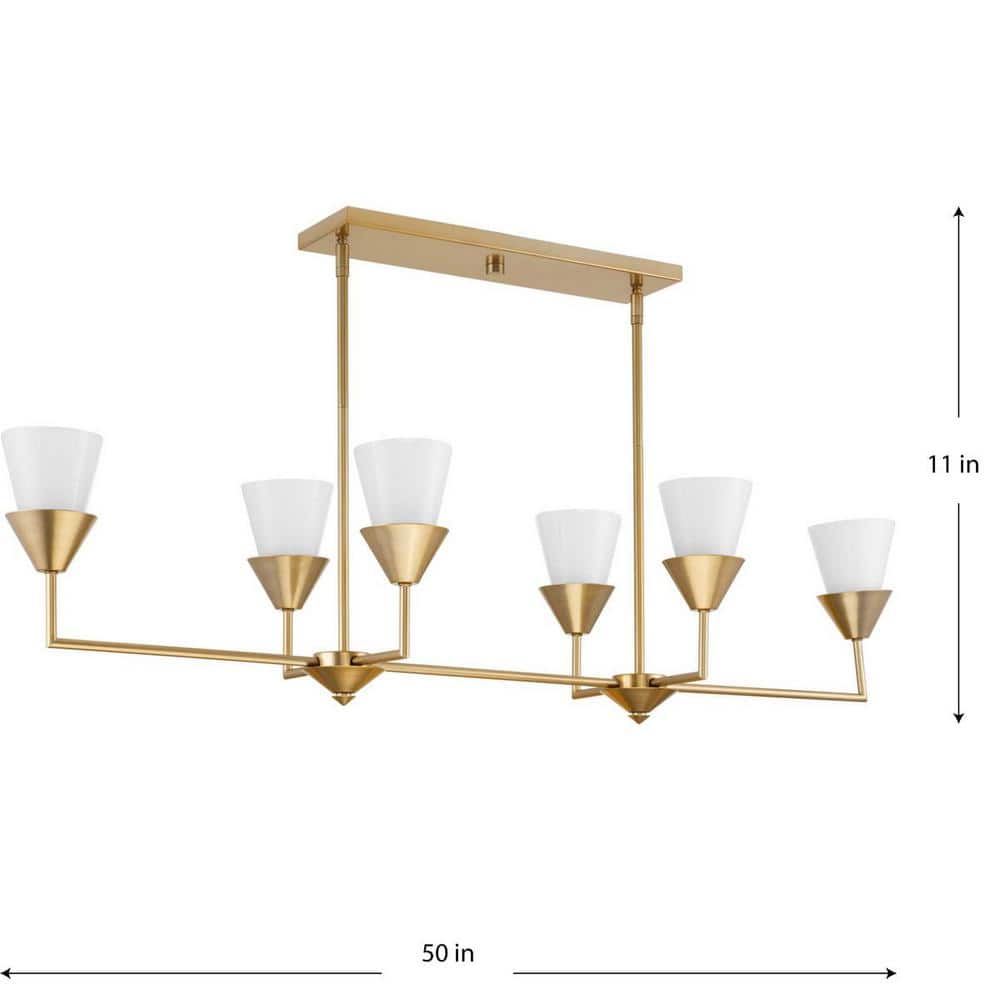 Progress Lighting Pinellas 60-Watt 6-Light Soft Gold Luxe Industrial Island Light with Opal Glass Shades