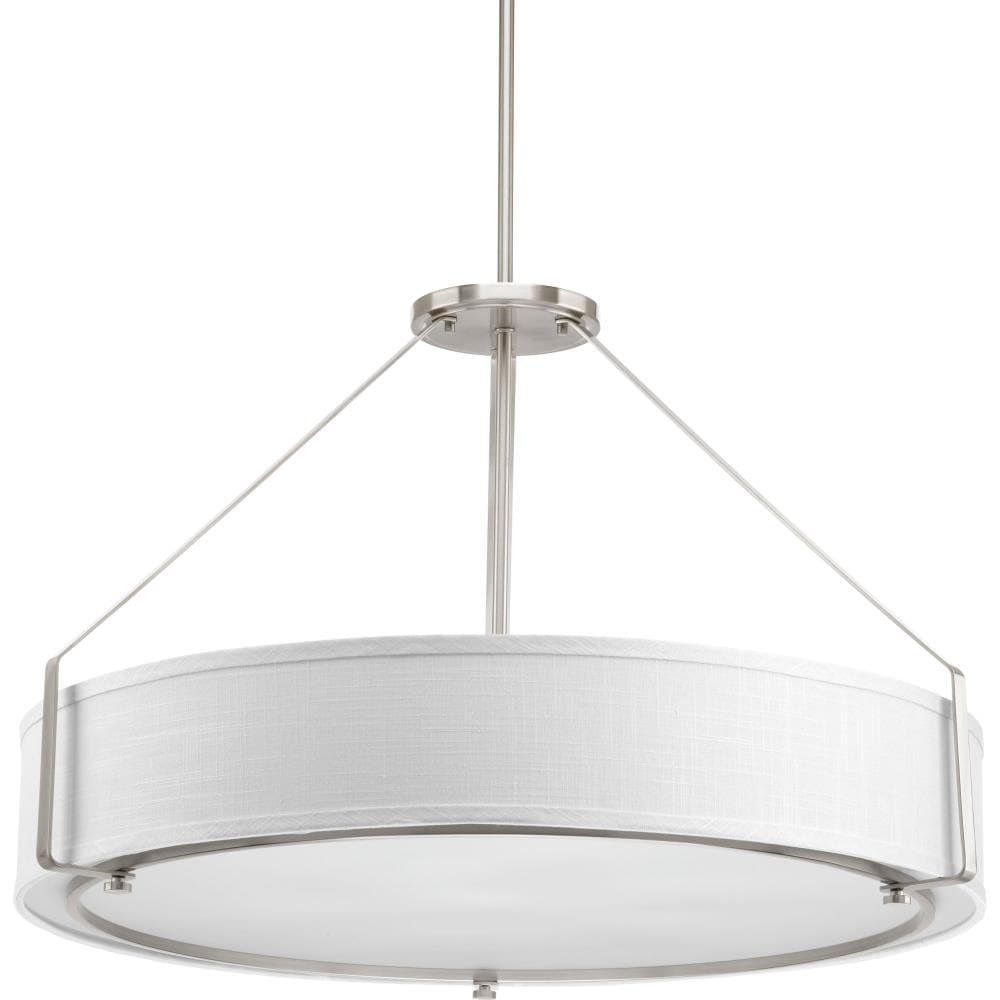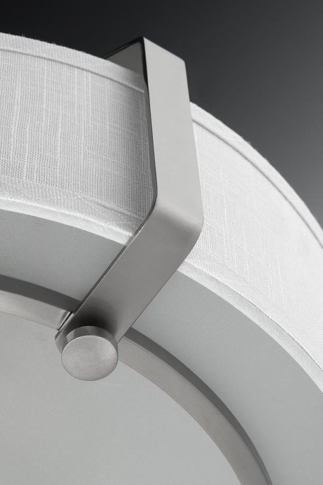 • Sleek Design: Features a brushed nickel finish with a white linen drum shade and etched glass diffuser for a refined appearance.