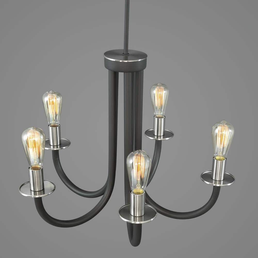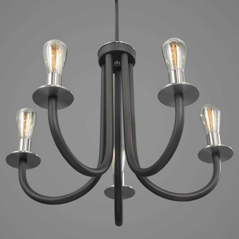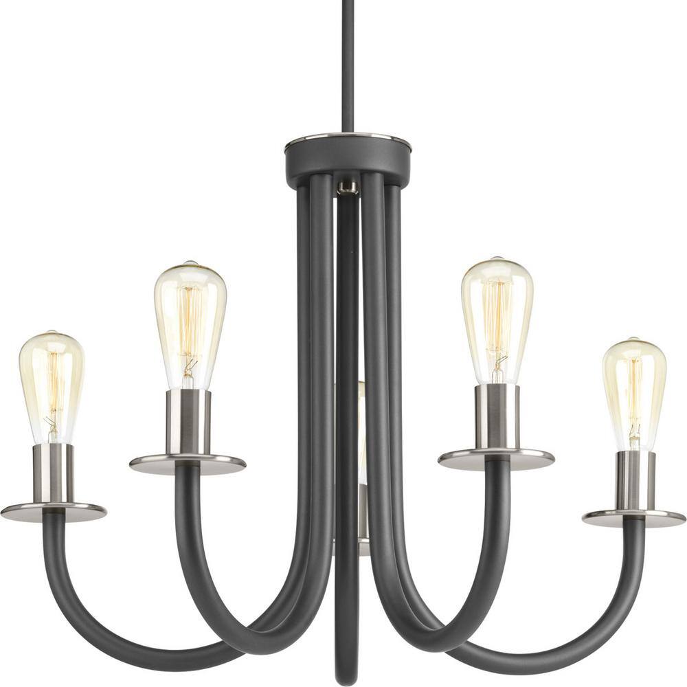 Transform your space with the urban chic charm of the 5-Light Graphite Chandelier from Progress Lighting and experience unparalleled style.