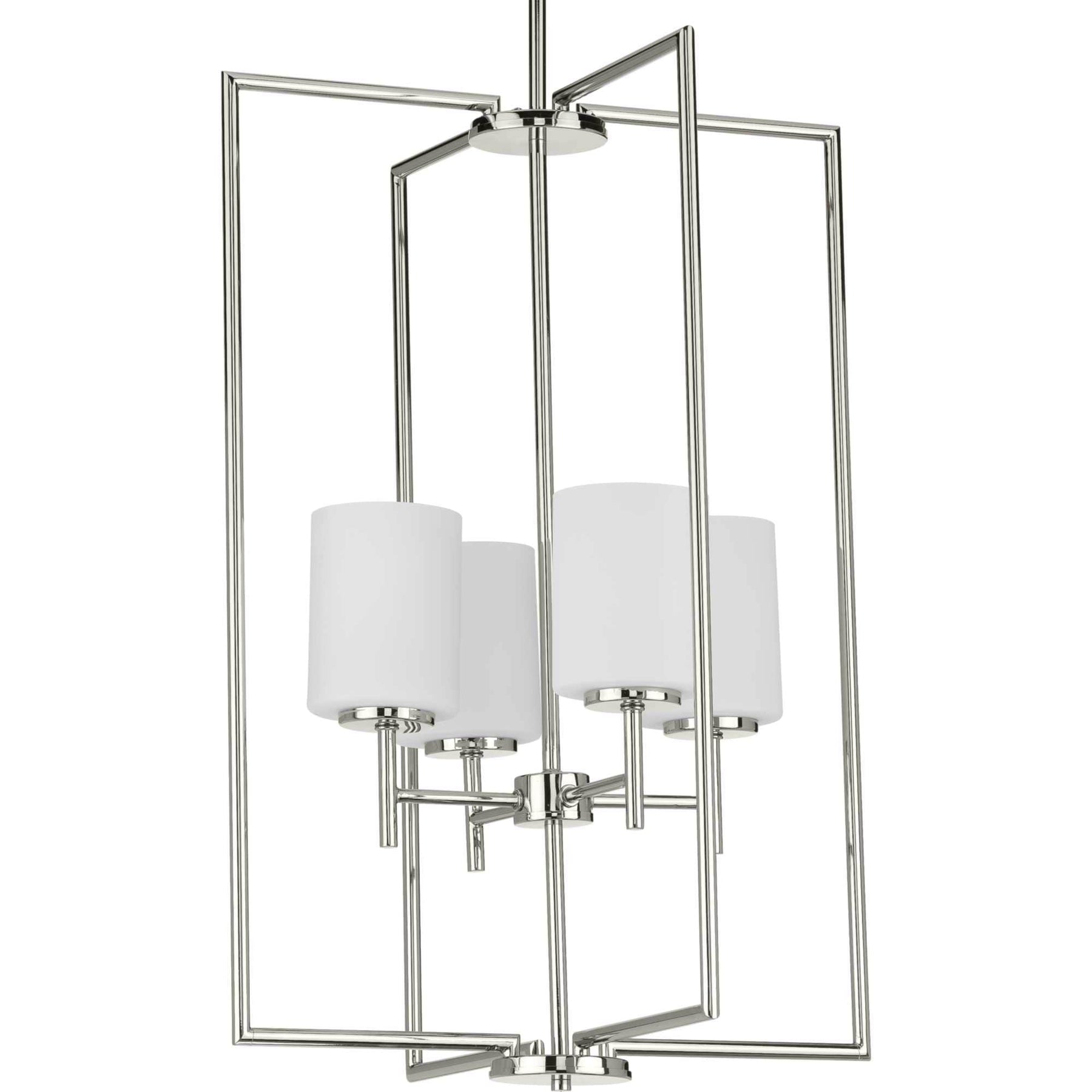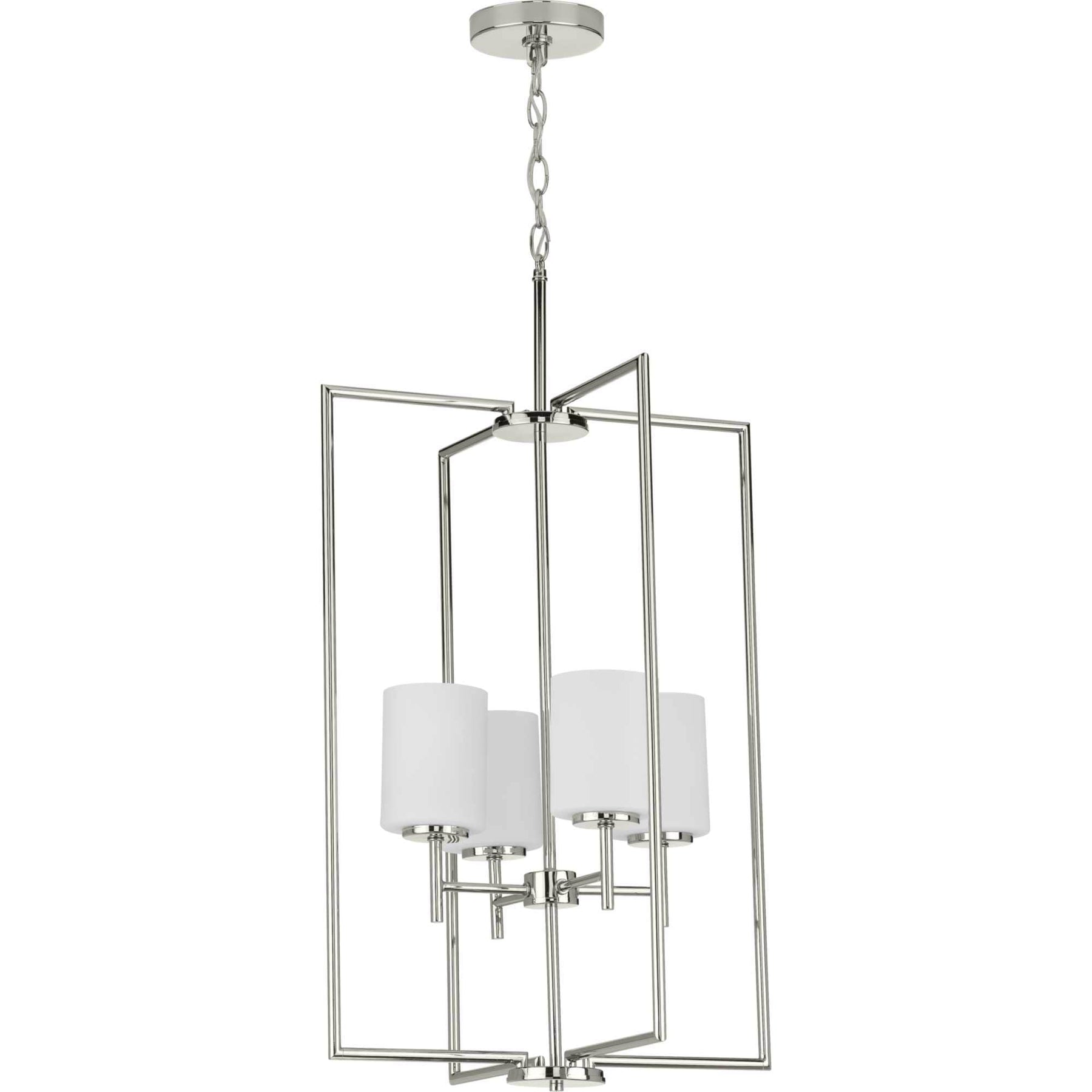 Progress Lighting Replay 4-Light Polished Nickel Modern/Contemporary Etched Glass Lantern Medium Hanging Pendant Light