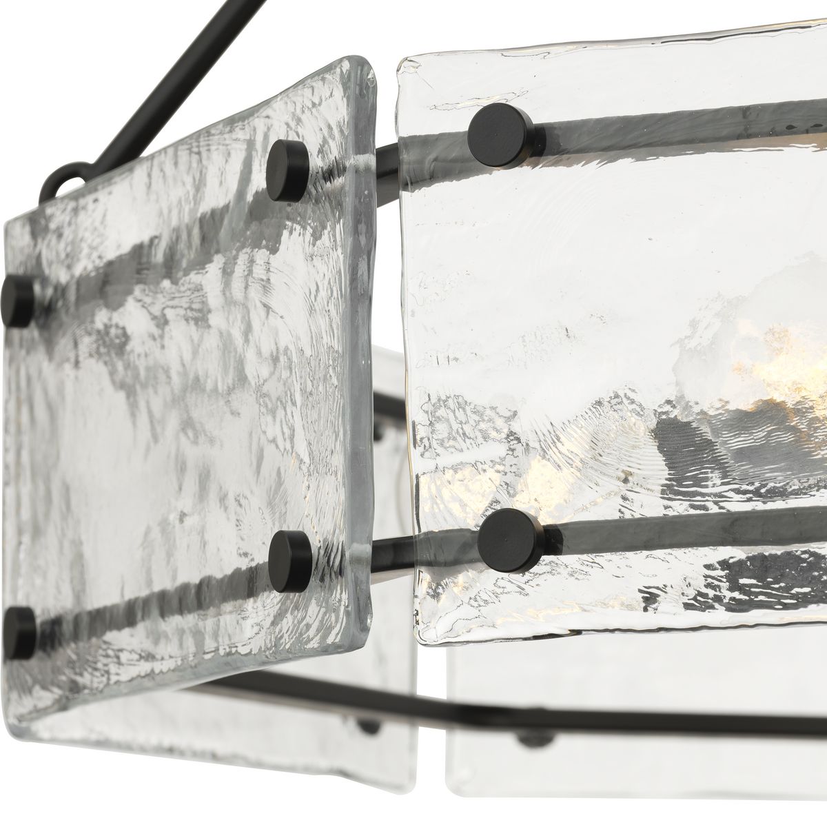 The Rivera Chandelier effortlessly transforms any space with its harmonious blend of industrial craftsmanship and elegant design. The striking matte black finish against the textured glass evokes a sense of rugged sophistication. Picture this piece suspended over a rustic wooden dining table or anchoring a loft-style apartment’s central living area. Its ambient glow and timeless design make it an indispensable element of luxurious living, seamlessly merging form with function.