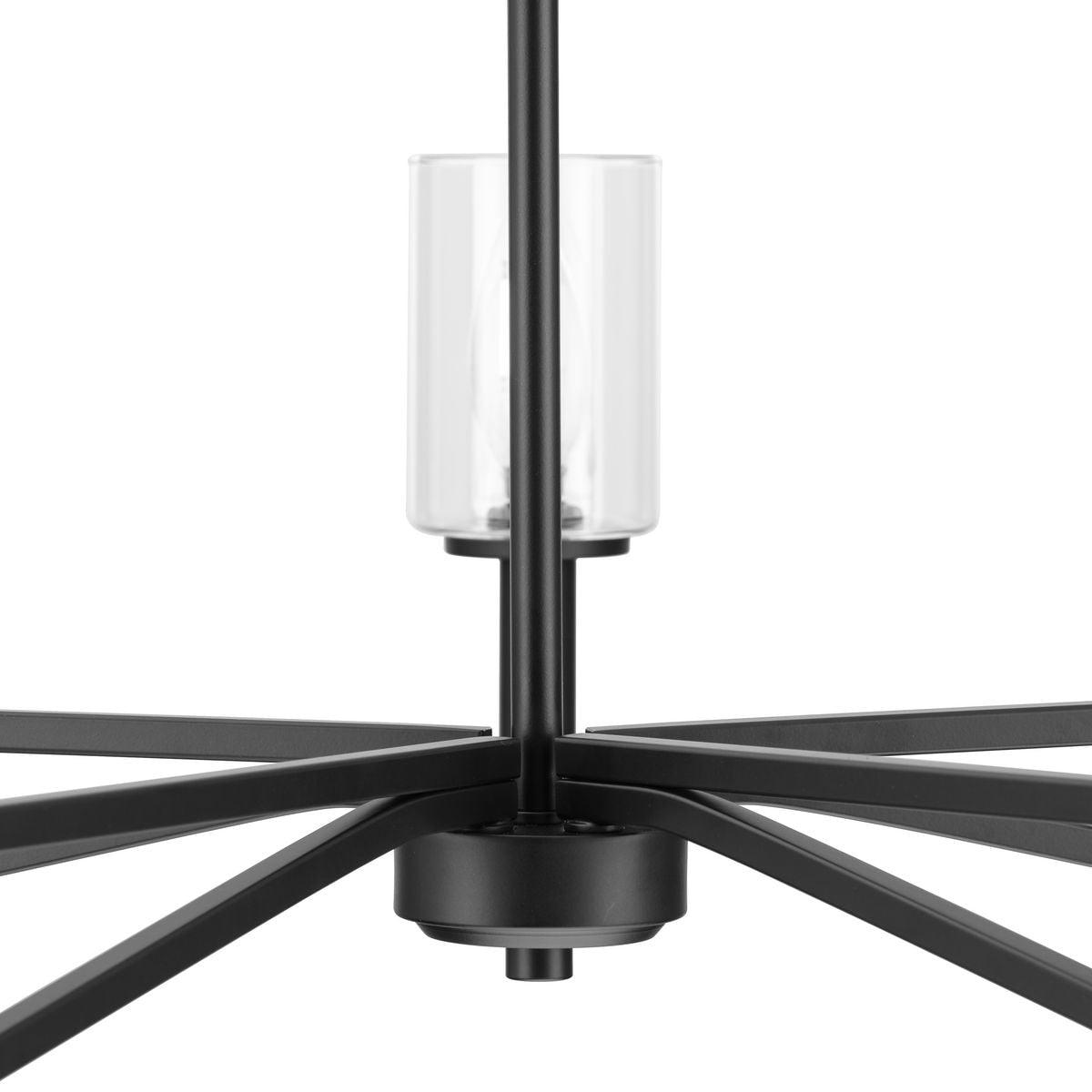 The Roxobel chandelier is a beacon of modern sophistication, casting a captivating glow that transforms any room into a haven of contemporary luxury. Its matte black finish paired with clear glass shades creates a harmonious balance between bold and airy. Imagine this chandelier suspended above a chic dining table, casting elegant shadows to set the perfect mood. Truly, the Roxobel chandelier is not just lighting but a statement piece that defines your space in resplendent style, becoming an essential hallmark of refined living.