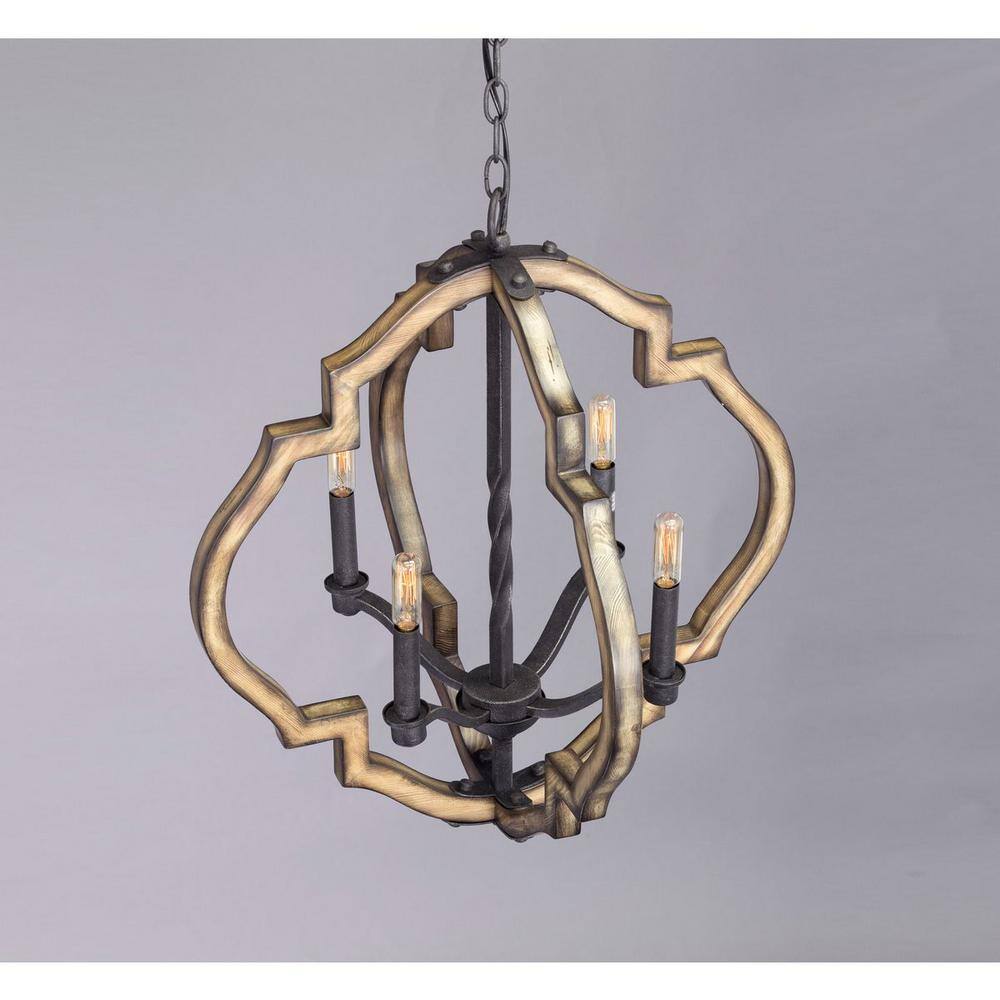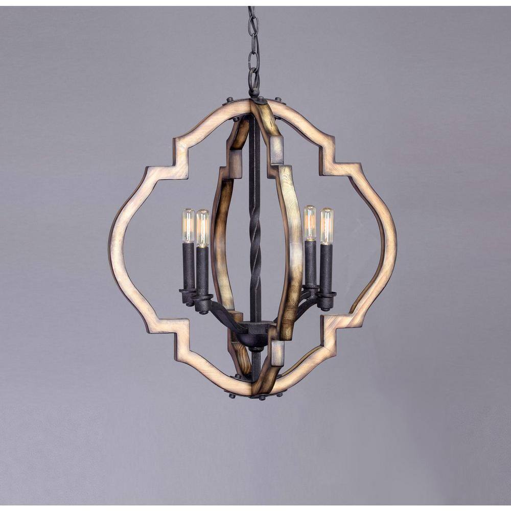 Elevate your home with the Spicewood Collection Chandelier by Progress Lighting. This 4-light fixture features a stunning blend of rich solid wood and gilded iron, perfect for adding a farmhouse charm to dining rooms, foyers, and living spaces. Its classic quatrefoil design ensures timeless elegance, while its adaptability offers seamless integration with sloped ceilings.