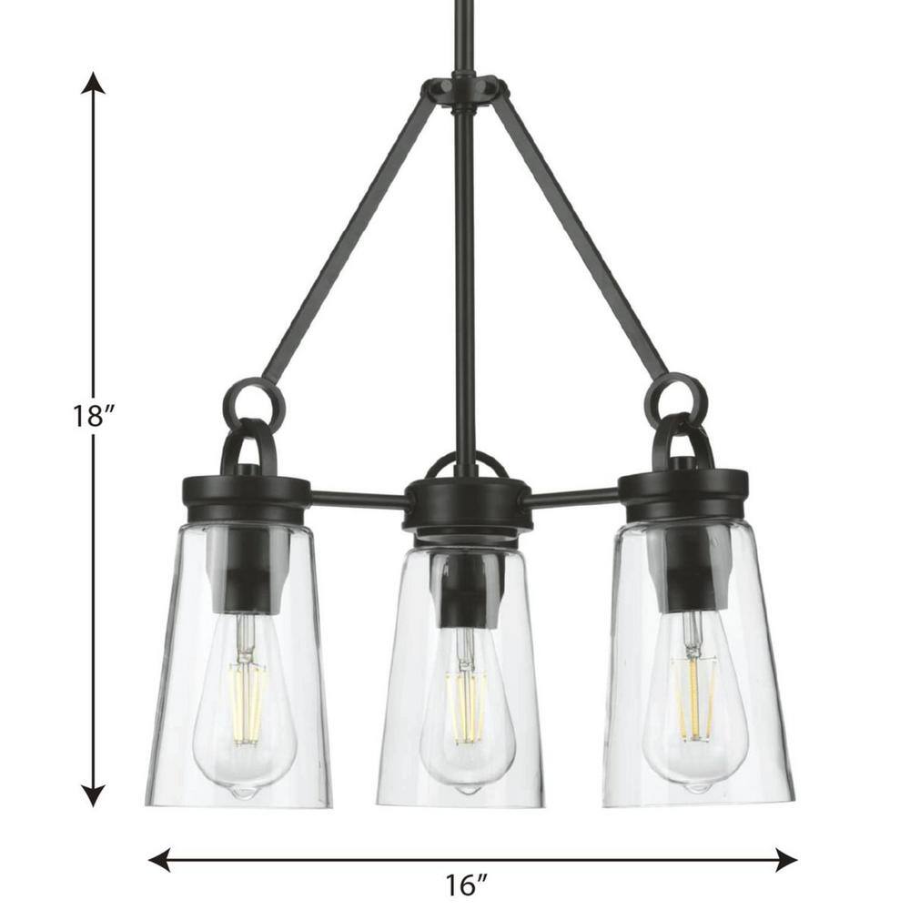 Progress Lighting Stockbrace 3-Light Matte Black Clear Glass Farmhouse Chandelier Light