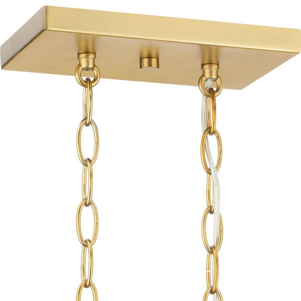 Elevate your dining room with the Tamassee Collection 6-Light Linear Chandelier from Progress Lighting. This stunning fixture features a brushed gold finish and clear glass shades, perfect for adding a touch of elegance to transitional and modern traditional interiors. Enjoy customizable hanging heights and optimal lighting efficiency with this stylish centerpiece.