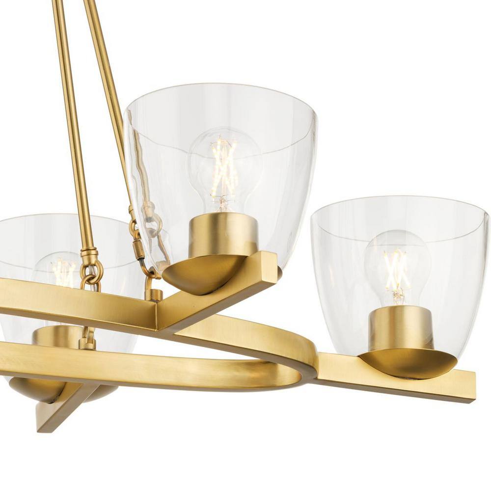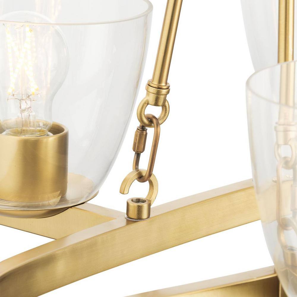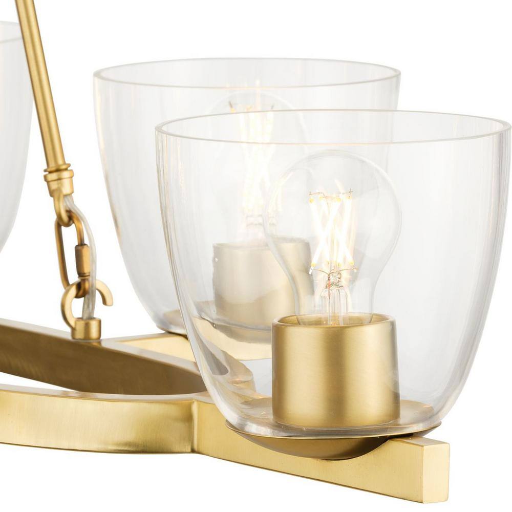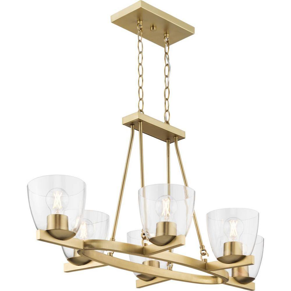 Progress Lighting Tamassee Collection 6-Light Brushed Gold Updated Traditional Linear Chandelier with Clear Glass Shades for Dining Room
