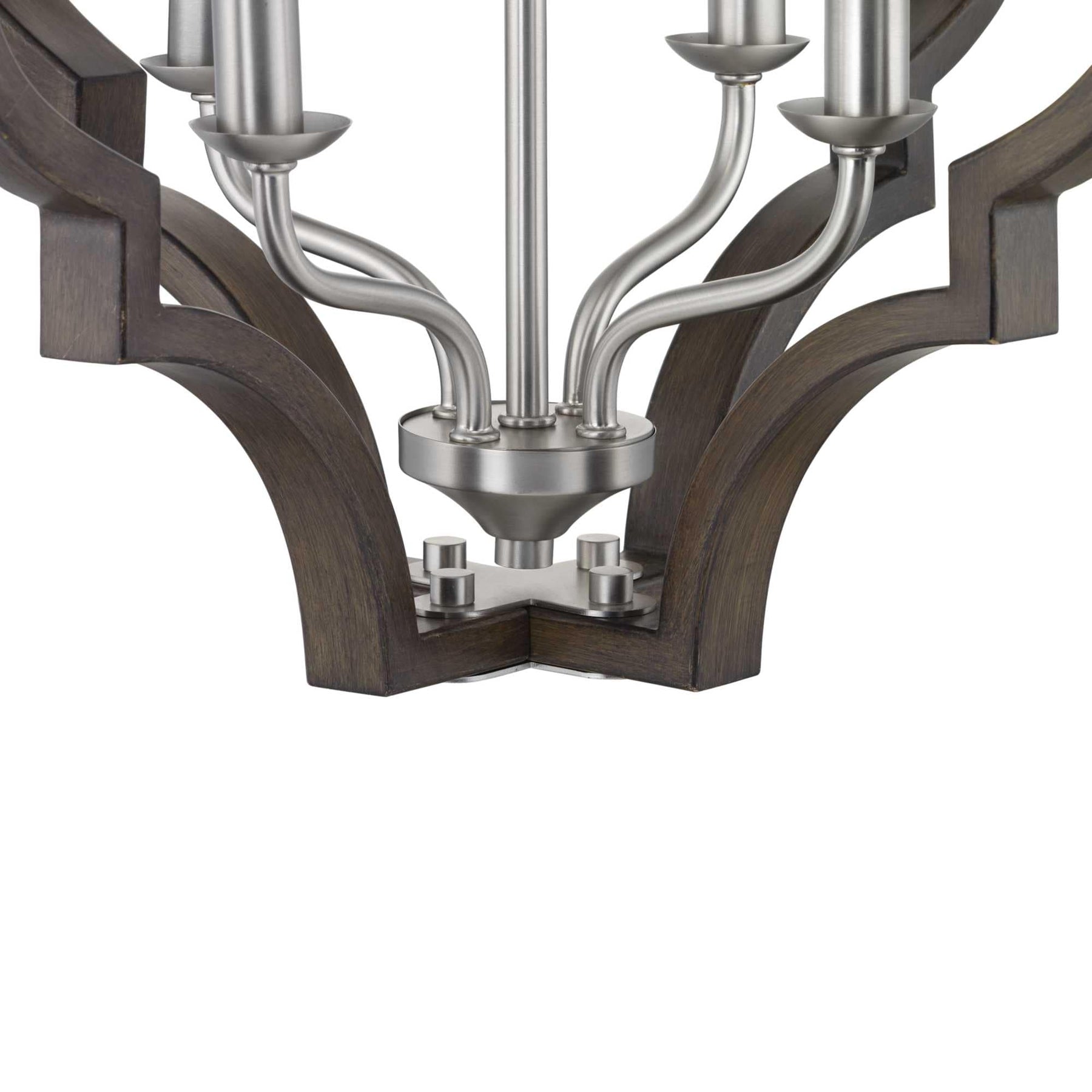 Progress Lighting Teigen 4-Light Teak Wood and Satin Nickel Farmhouse Geometric Medium Hanging Pendant Light