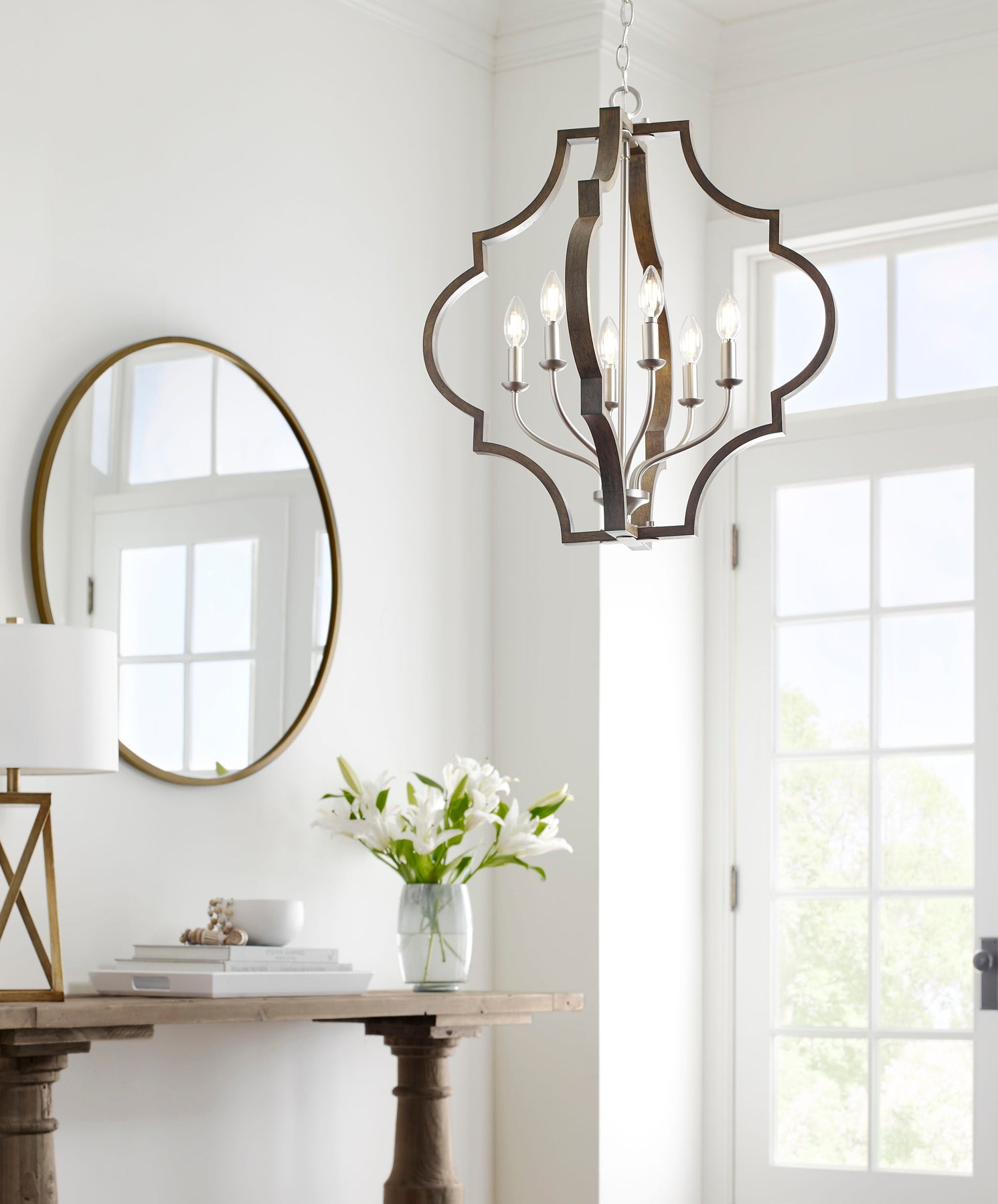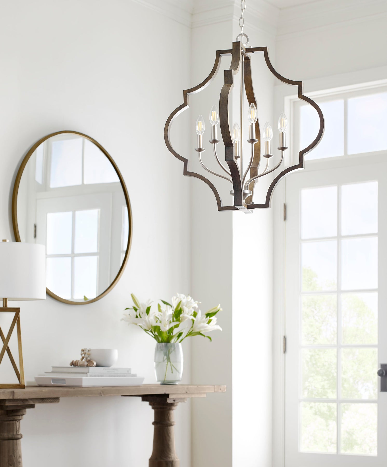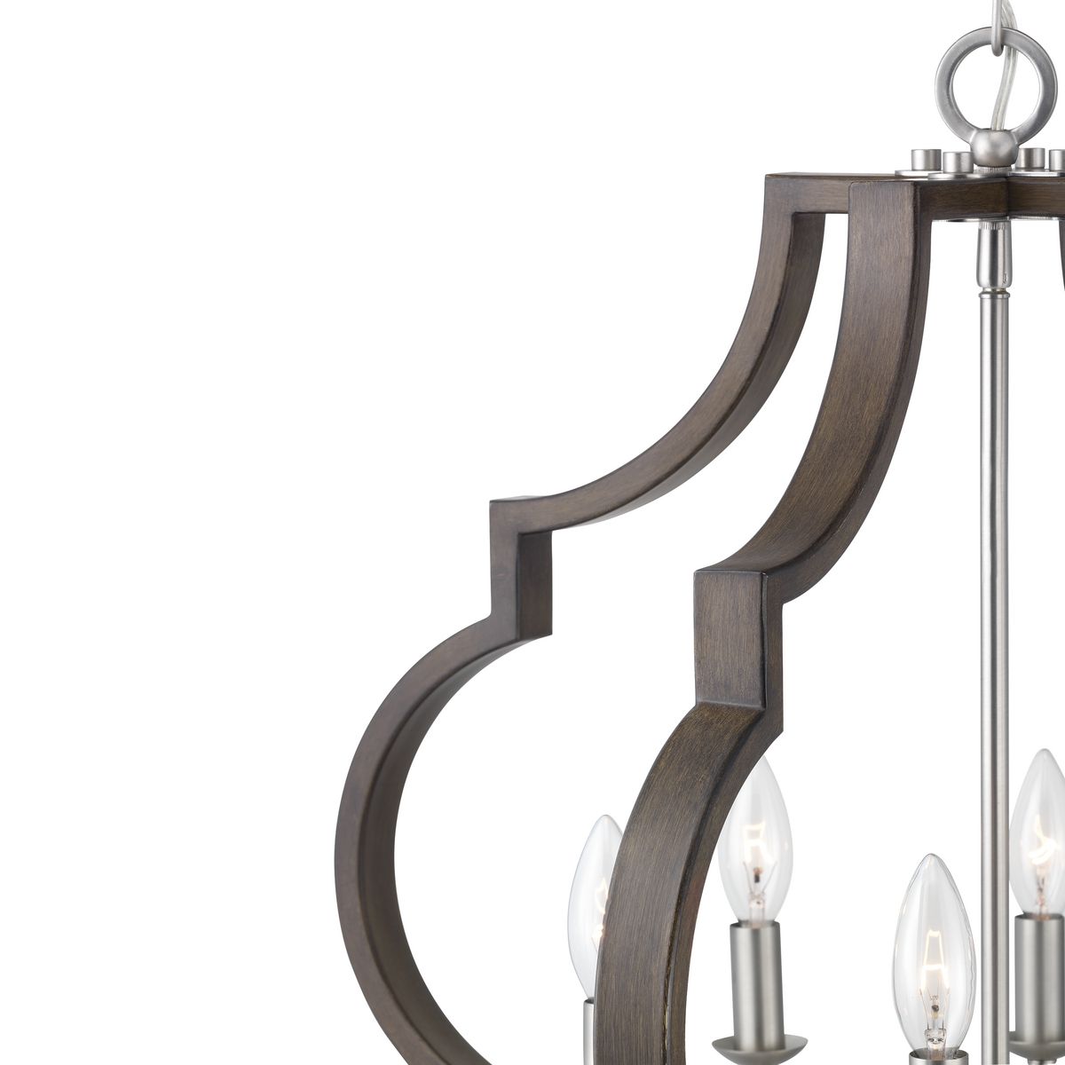 The Teigen 6-Light Pendant Light sculpts an ethereal glow in any sophisticated interior space, transforming plain surfaces into scenes of visual intrigue. Its open cage design crafted from teak wood and satin nickel elevates farmhouse aesthetics into modernity, allowing light to dance through its timeless geometry. Perfect above a rustic dining setup or cozy kitchen island, this piece is as much about the ambiance as it is about light. Essential for those who seek to intertwine tradition with graceful, contemporary living.