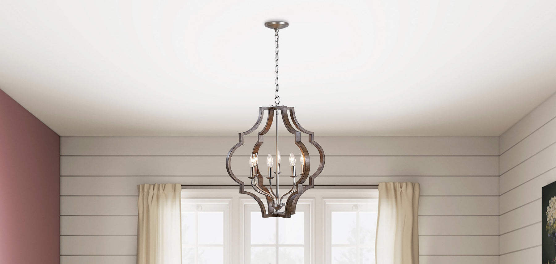 A: The Teigen Pendant Light uses 6 candelabra base (E-12) bulbs, compatible with LED, CFL, or incandescent up to 60 watts each. Dimmable bulbs can also be used for adjustable brightness.