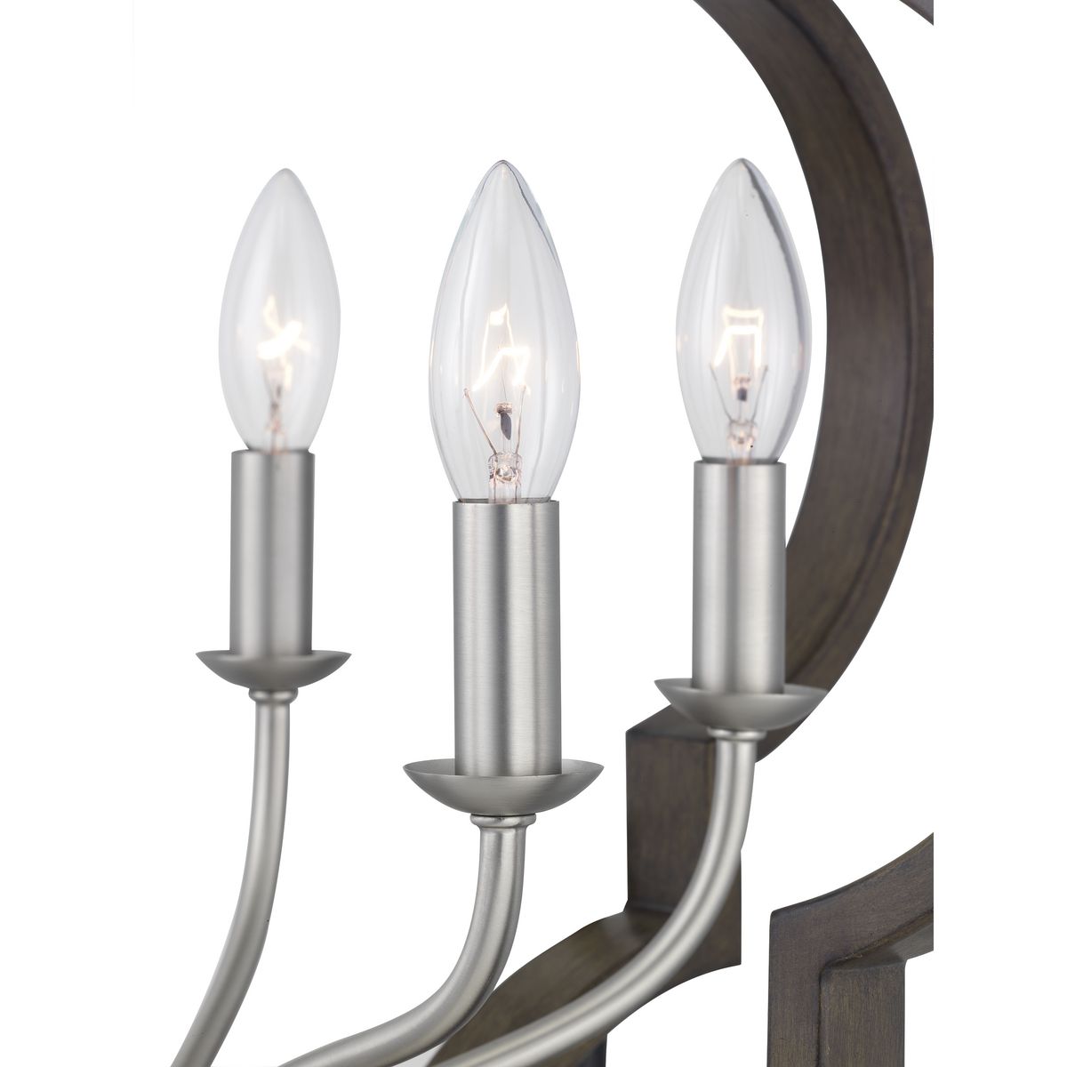 Illuminate your space with the Teigen 6-Light Pendant Light from Progress Lighting, crafted with a stunning combination of teak wood and satin nickel. Perfect for adding a farmhouse charm with its open geometric cage design, this fixture promises flexibility with dimmable bulb compatibility and includes all necessary mounting hardware for easy installation.