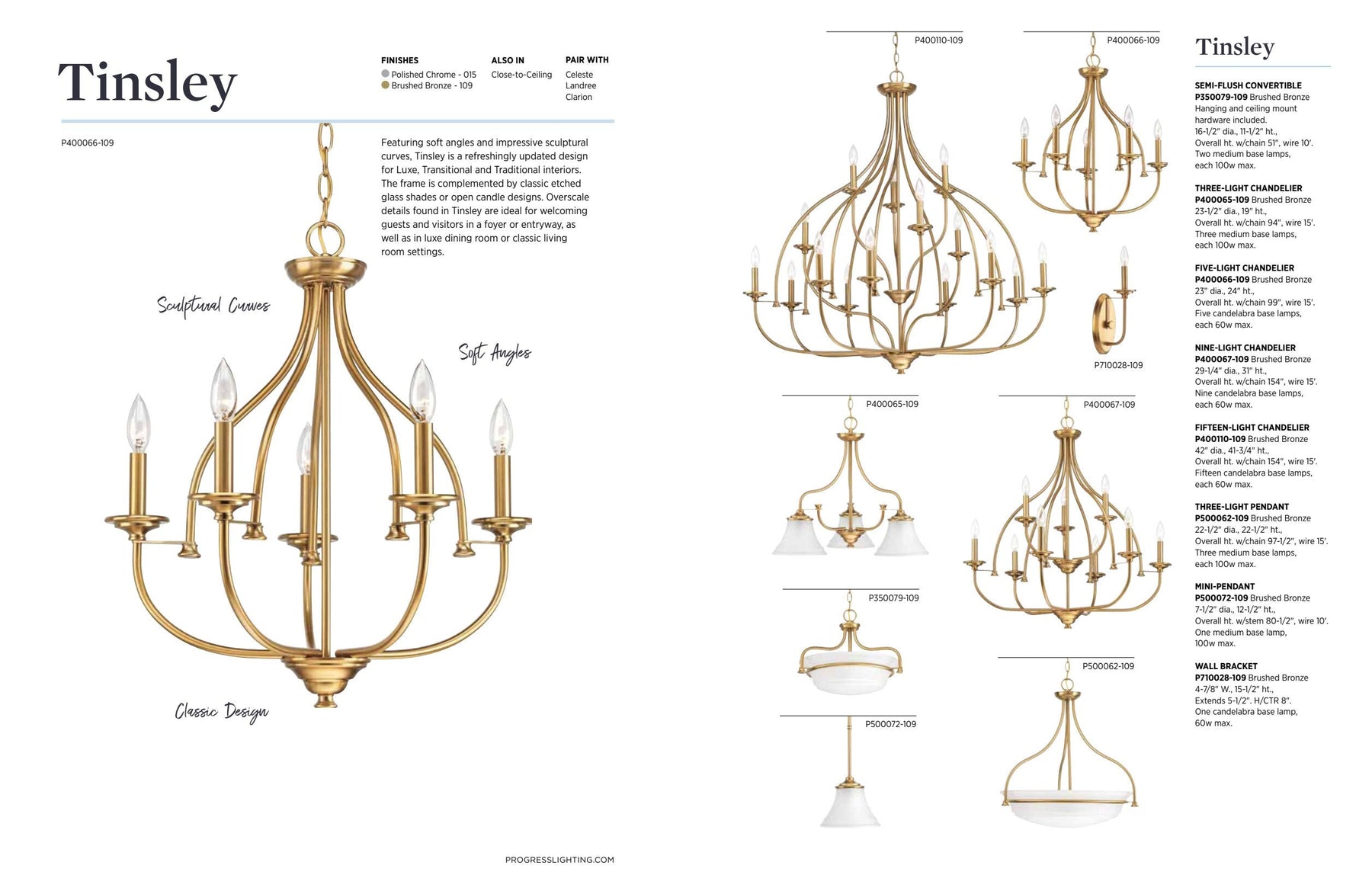 • Design: Soft angles and sculptural curves for a transitional look.