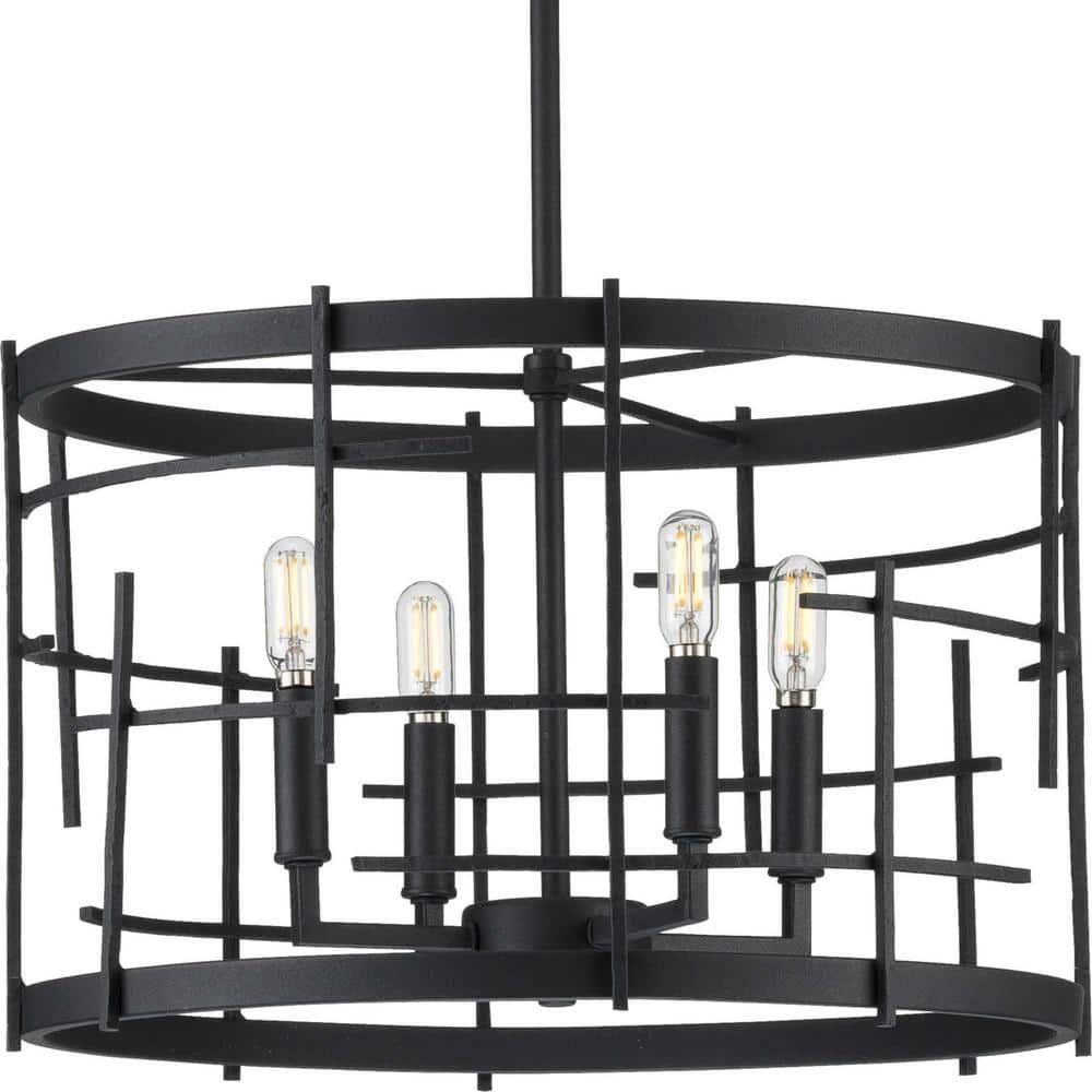 Progress Lighting Torres Collection 4-Light Textured Black Modern Chandelier Light