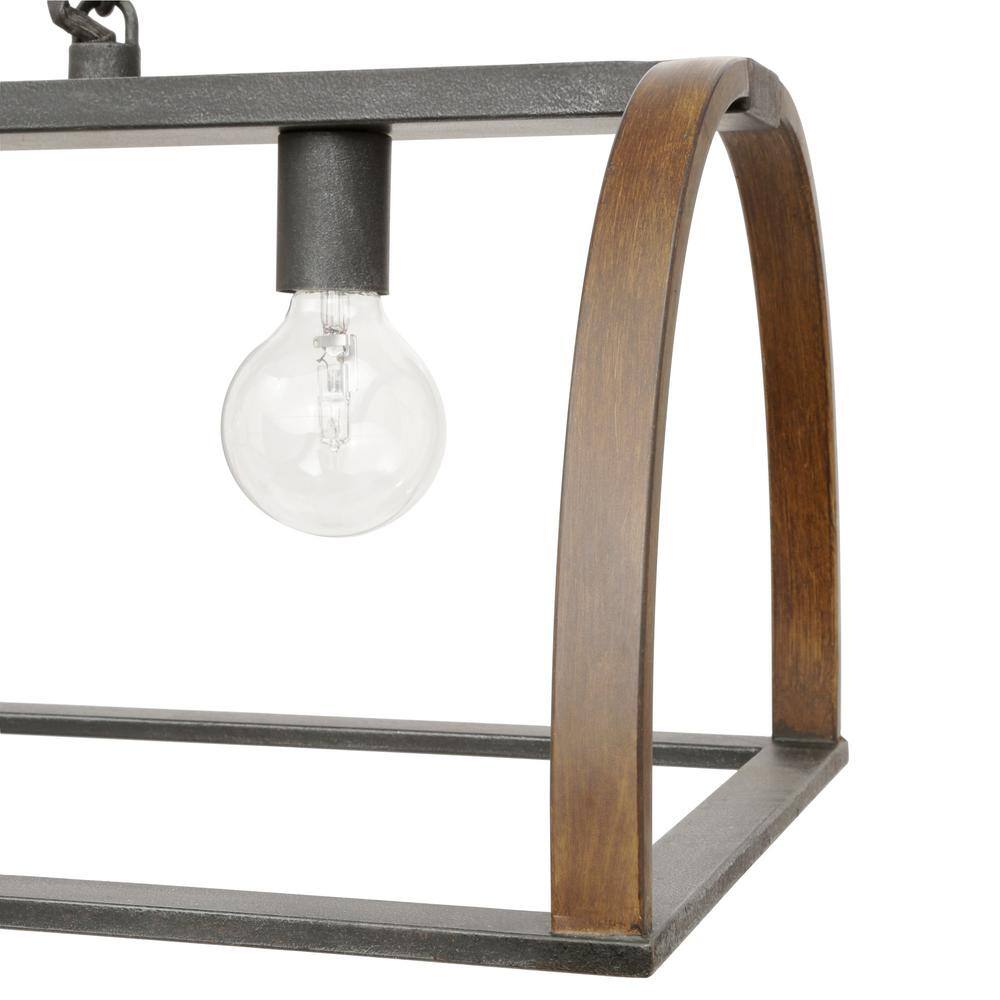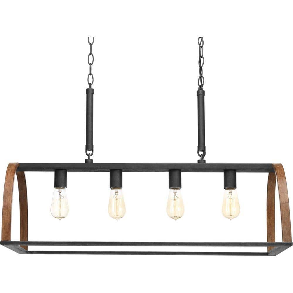 Elevate your space with the Trestle 4-Light Gilded Iron Farmhouse Chandelier by Progress Lighting. Designed for industrial or rustic living areas, this chandelier boasts a hand-painted cage paired with geometric elements, creating a striking visual appeal. Ideal for kitchens, dining rooms, or living areas, its gilded iron finish with oak accents adds understated elegance and warmth.