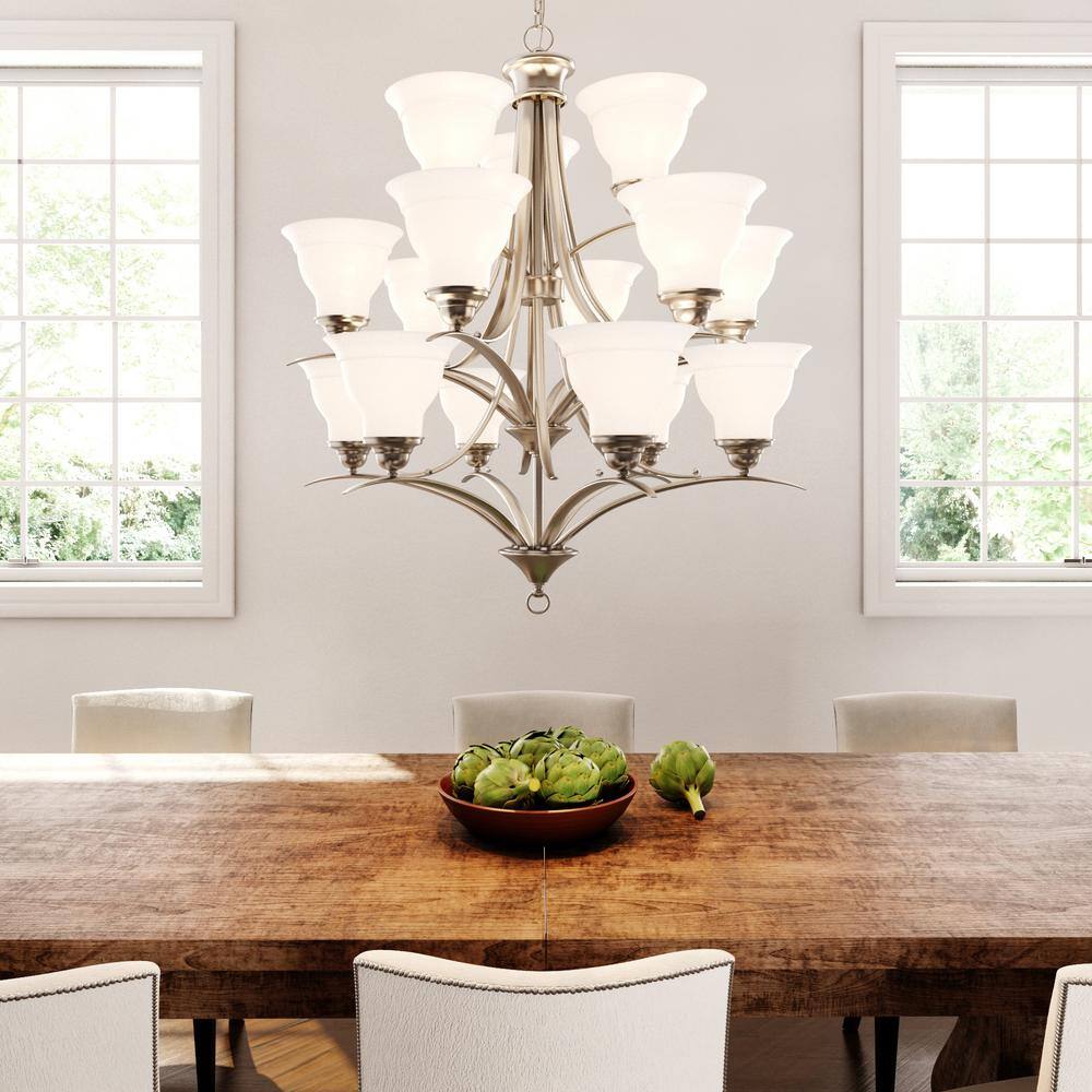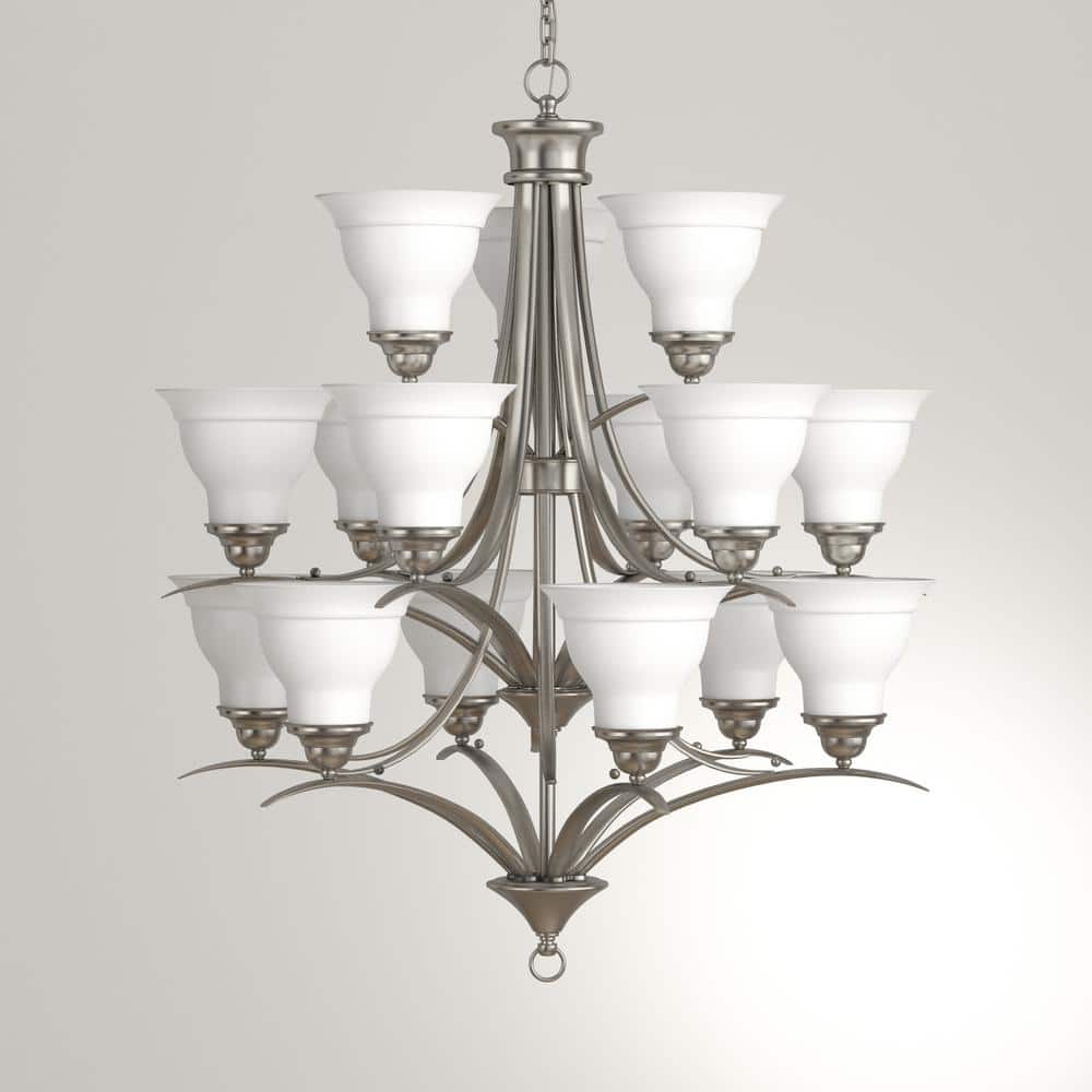 Progress Lighting Trinity Collection 15-Light Brushed Nickel Etched Glass Traditional Chandelier Light