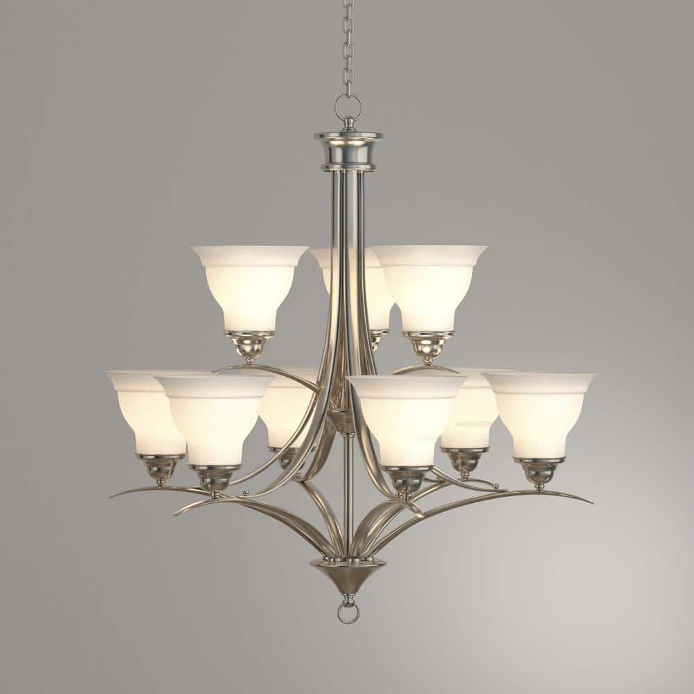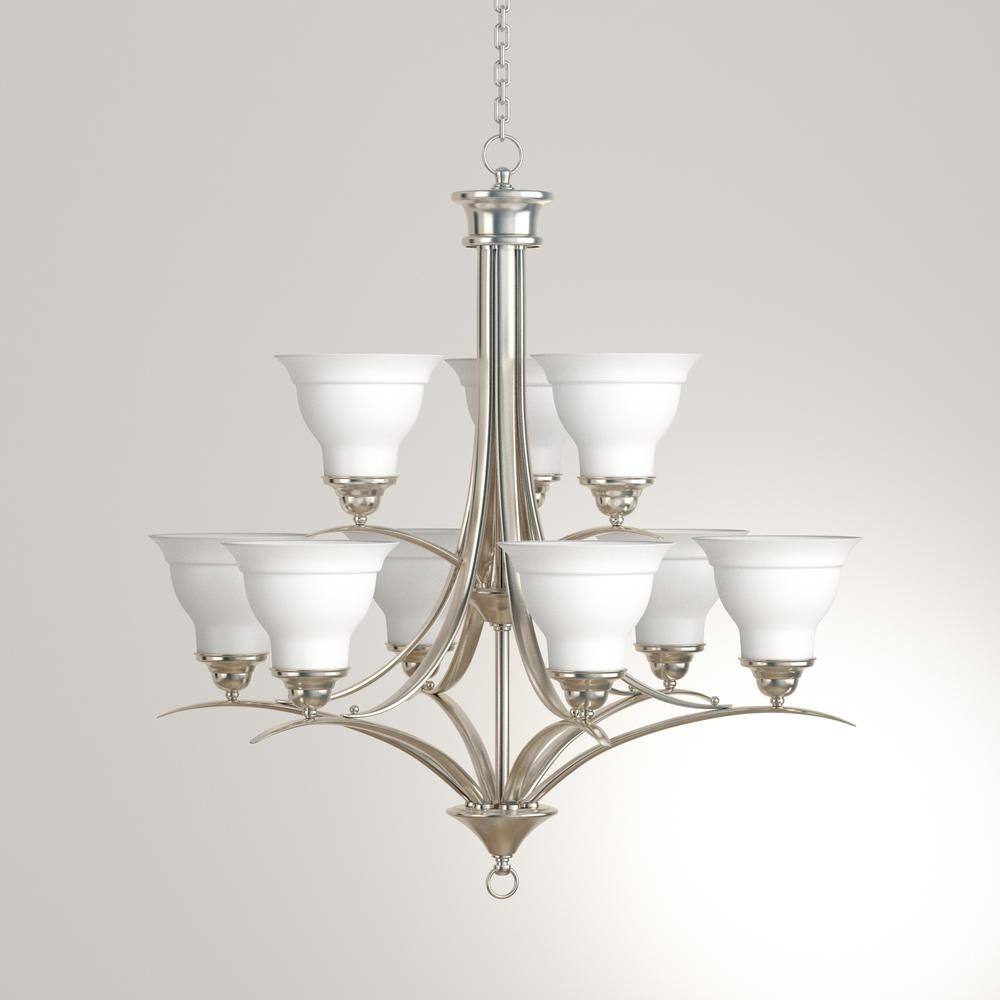 Progress Lighting Trinity Collection 9-Light Brushed Nickel Etched Glass Traditional Chandelier Light