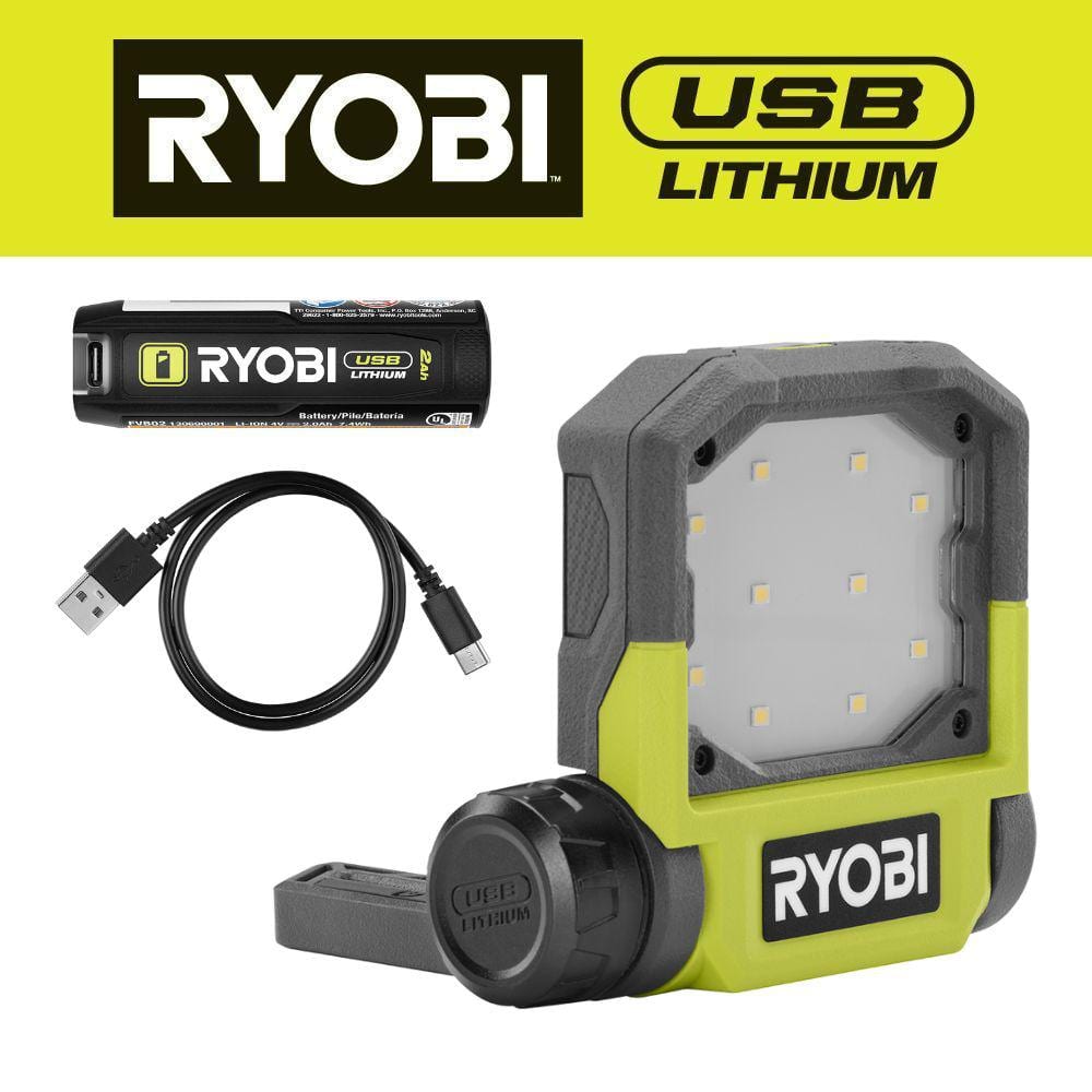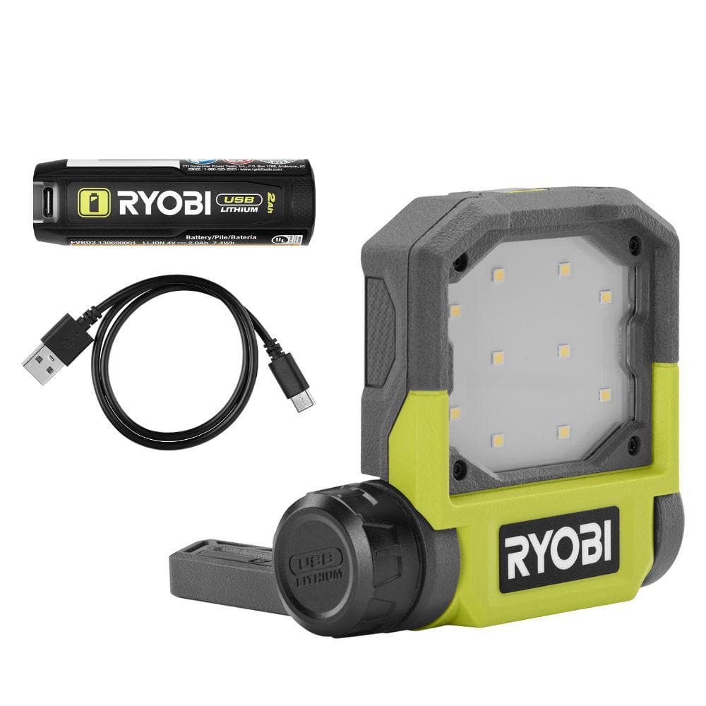 RYOBI 500 Lumens LED USB Lithium Pivoting Flip Light Kit 3-Mode with Battery and Charging Cable