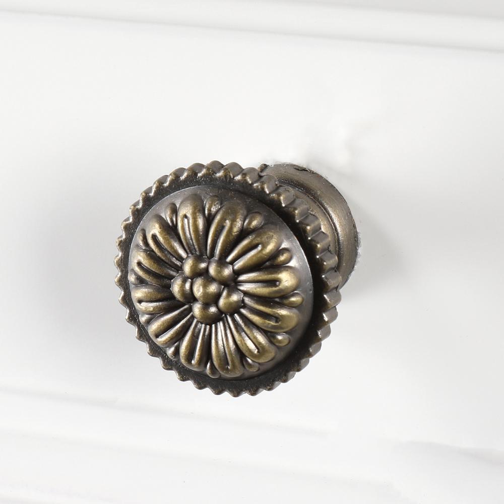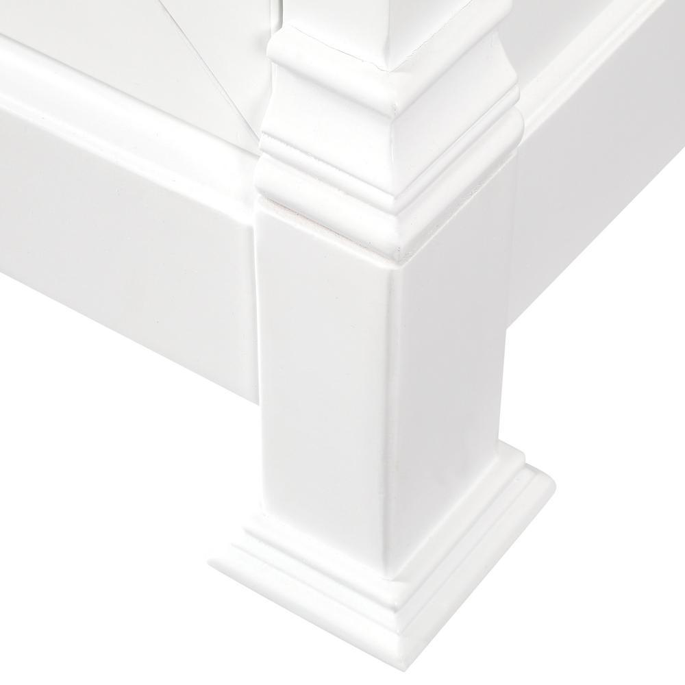 • Metal hardware with antique bronze finish provides a striking contrast to the white finish