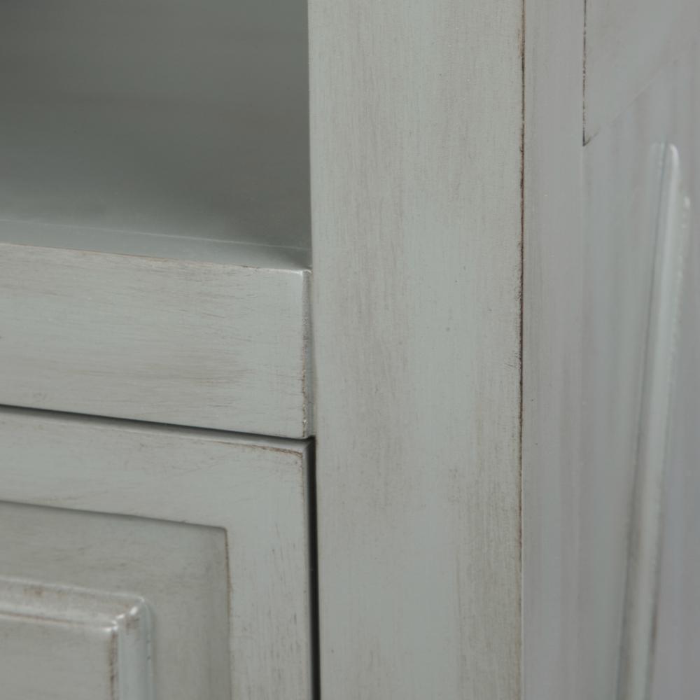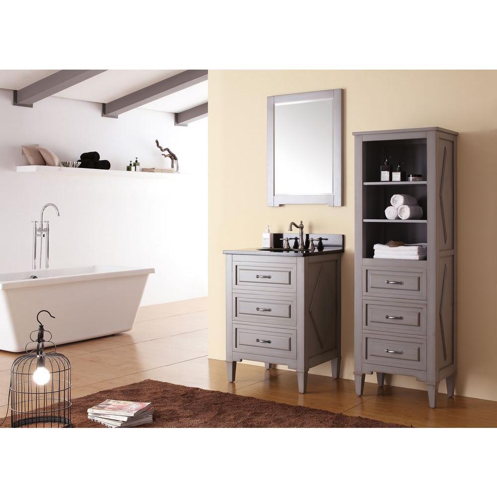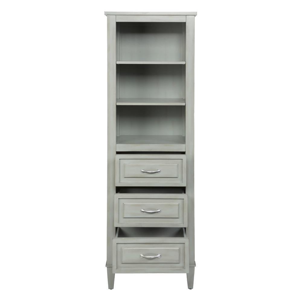 The Kelly Collection 22 in. x 65 in. Linen Tower commands attention in any bathroom. Three open shelves and three soft-close drawers provide plenty of storage. The elegant detailing and Grayish Blue finish catch the eye and match perfectly with any Kelly vanity or as a standalone furniture piece.