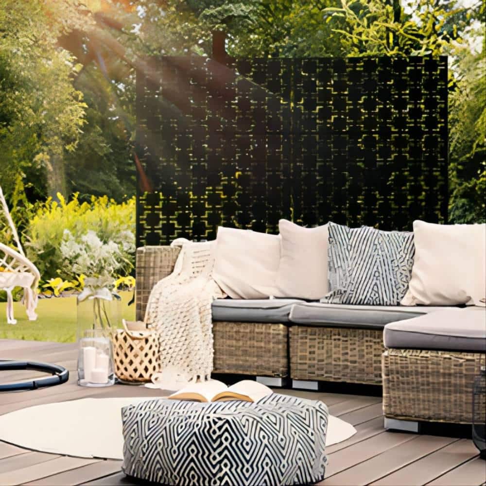 Transform your outdoor living space into a serene enclave with these stunning rust-colored metal privacy screens from Lirago. The rich hue and intricate detailing offer a refined yet grounding touch to any garden or patio ambiance. Place them strategically to delineate spaces or create a secluded nook for relaxation or entertaining. These panels are not just dividers; they are an essential design element that integrates functional privacy with outdoor charm, elevating your space to a new level of sophistication.