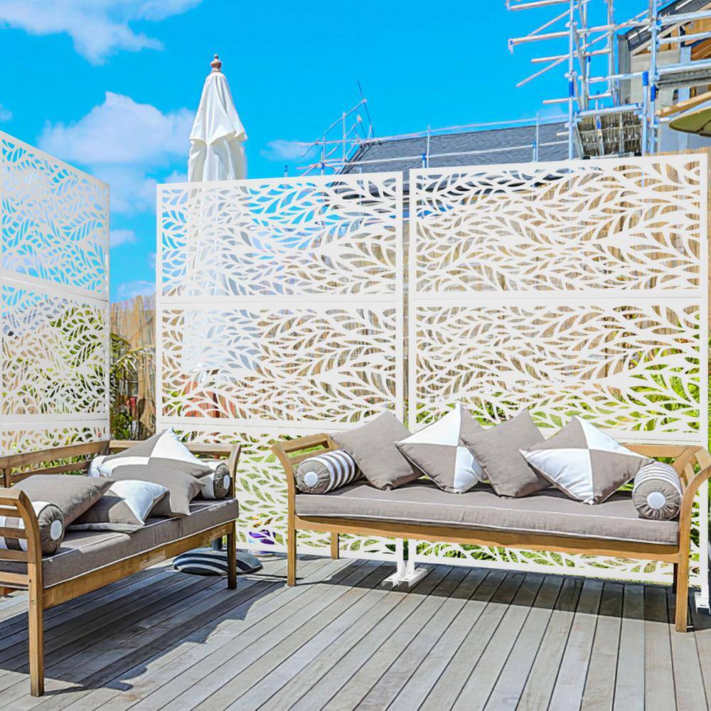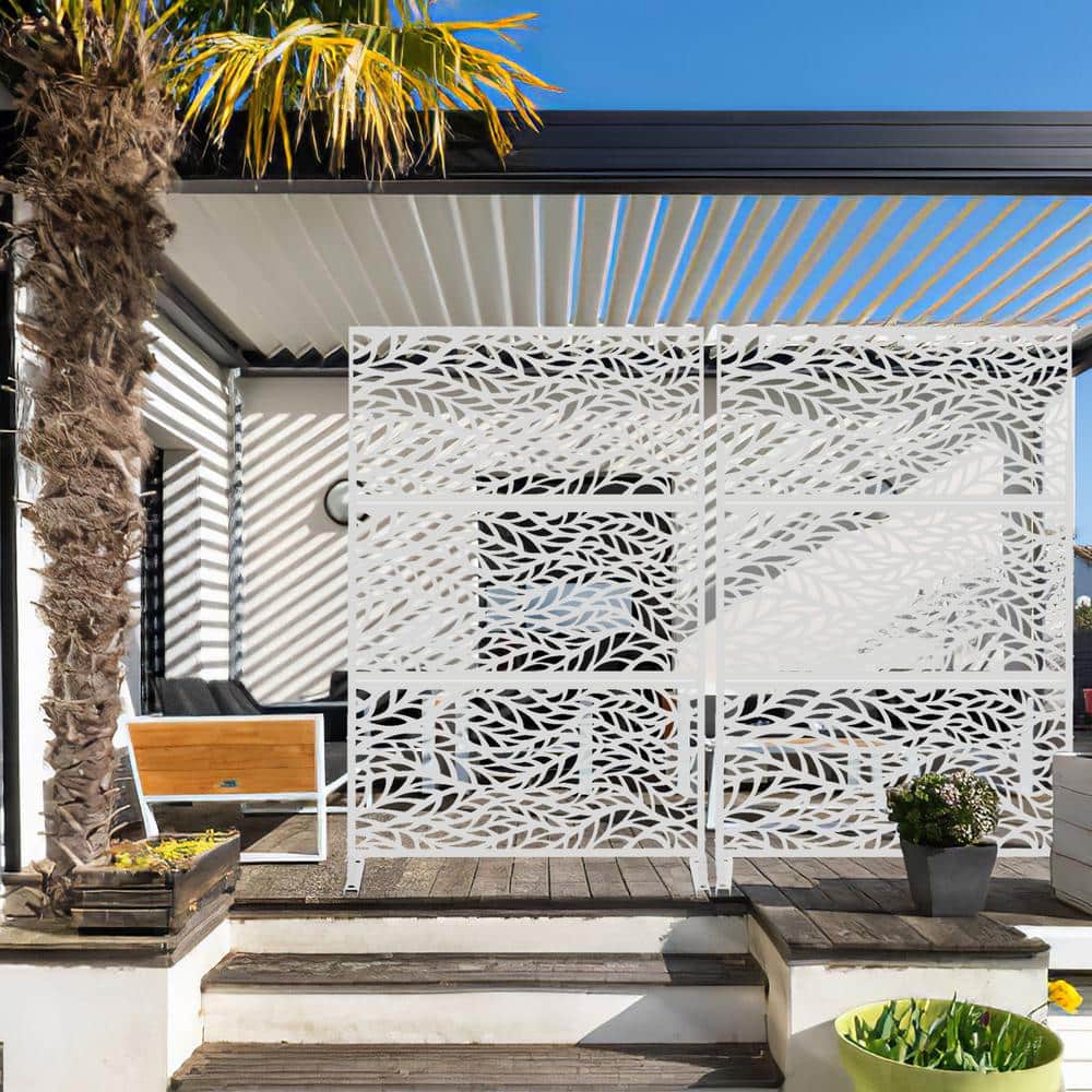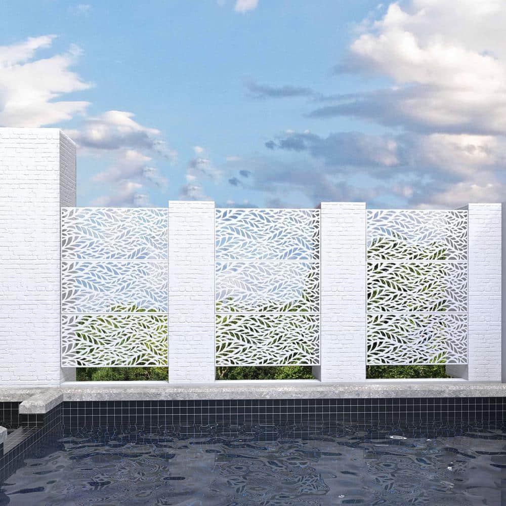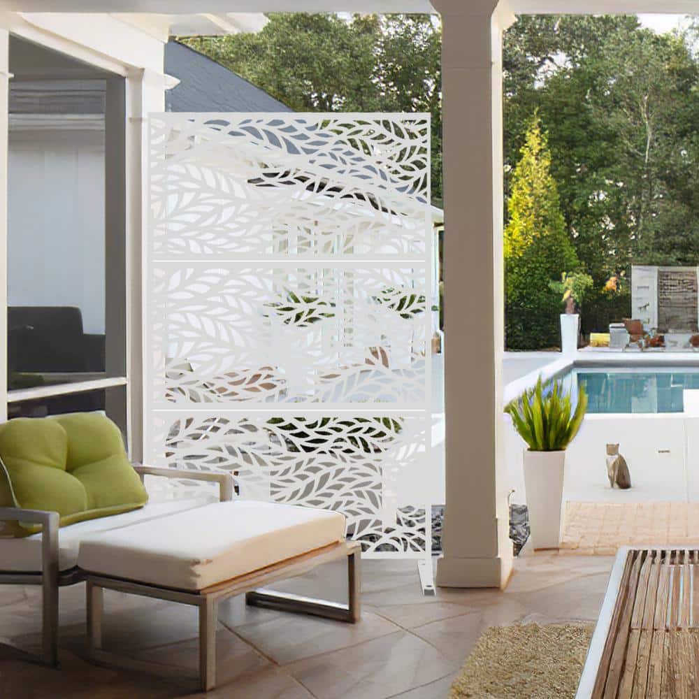 White Modern Outdoor Privacy Screen with Leaf Patterns