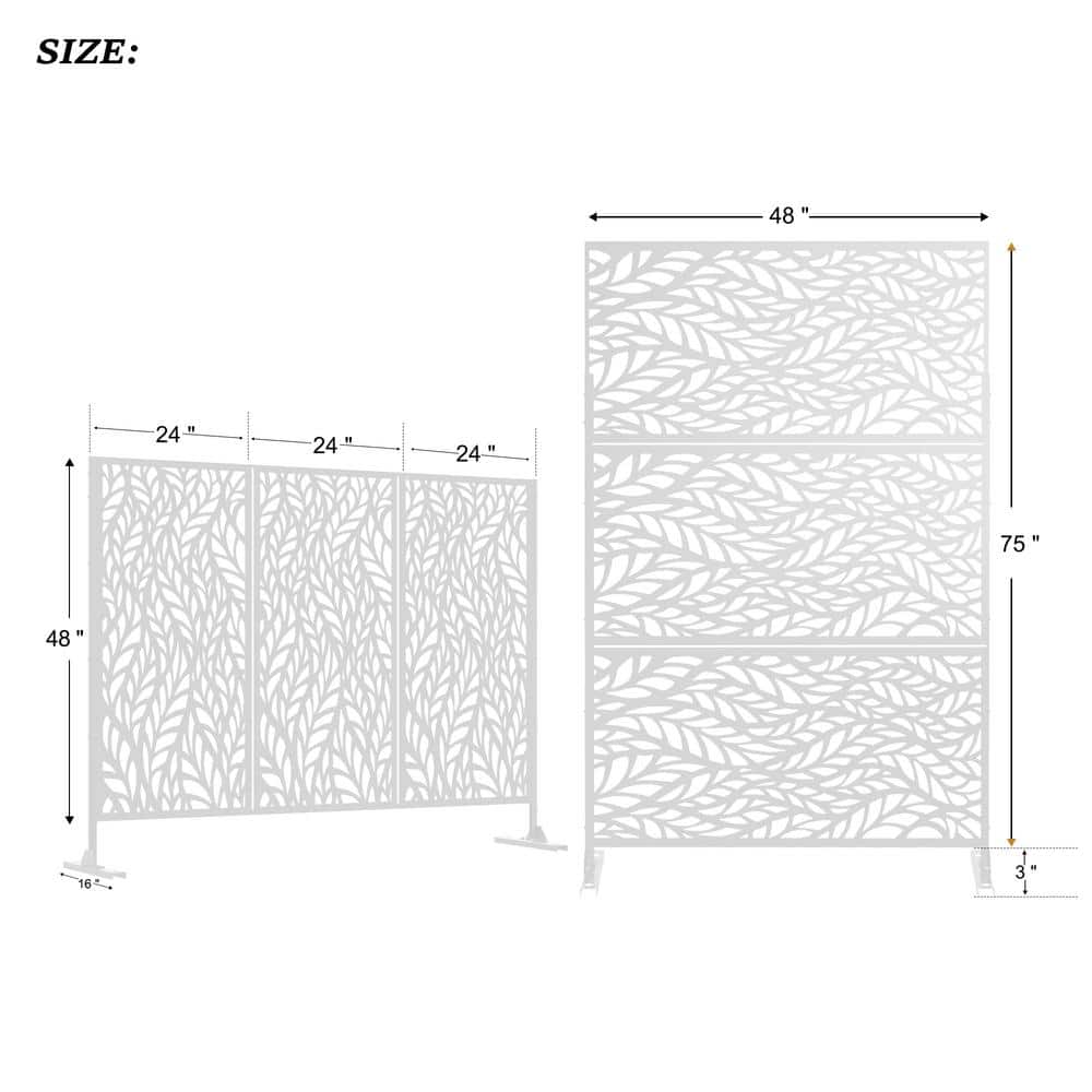 Add sophistication and privacy to any space with the Lirago White Modern Outdoor Screen. Made from durable galvanized steel, its chic leaf patterns offer elegance and reliability for both indoor and outdoor use. Ideal for gardens, balconies, or offices, this screen combines function and style effortlessly.