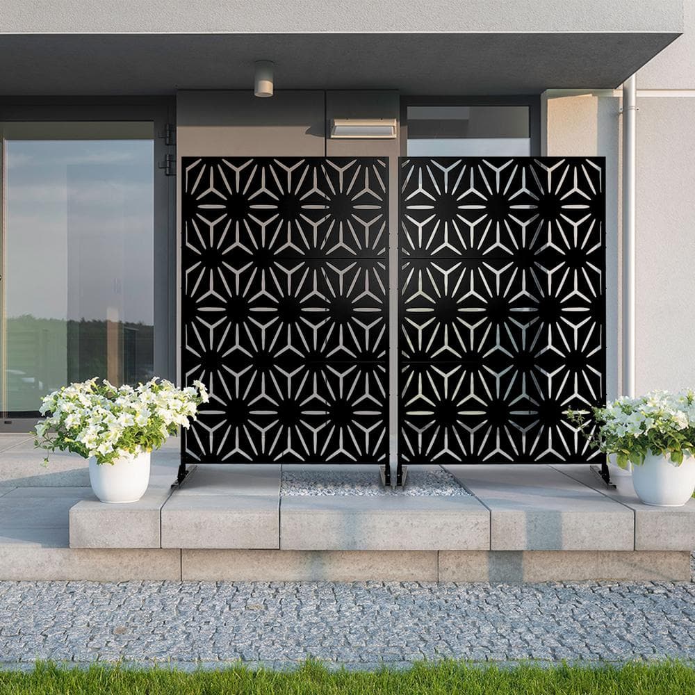 Transform any outdoor area into a secret garden sanctuary with Lirago's elegant privacy screen. The timeless black finish accentuates the striking silhouette, creating a classic backdrop for your chaise longues or dining setting. Position it to shield against the elements or unsightly views, crafting an intimate, inviting space. This privacy screen is the ultimate blend of form and function, a luxurious must-have for any discerning homeowner.