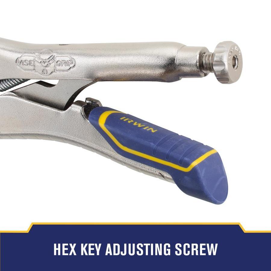 One-handed, triggerless release is easier to open than traditional locking pliers Hardened teeth are designed to grip from any angle Hex adjustment screw for adjusting pressure and work fit