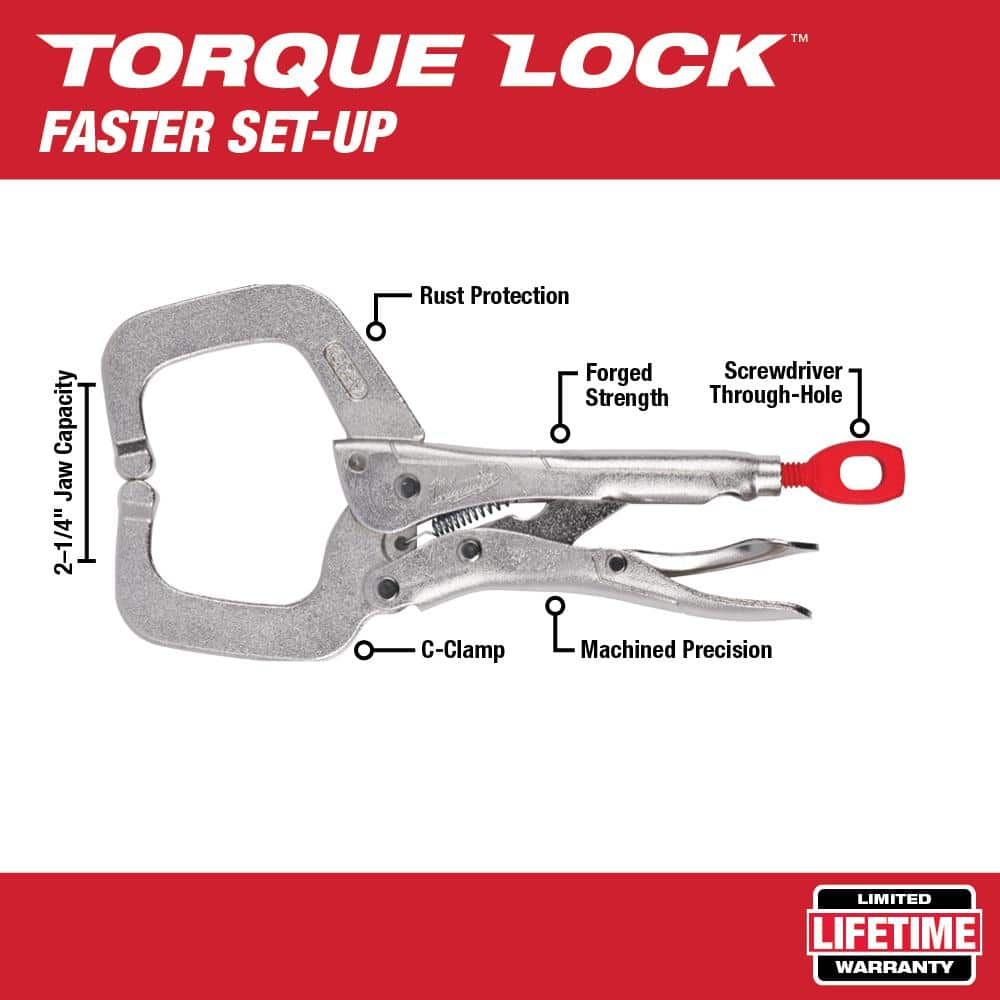 This 10‑piece Milwaukee Torque Lock kit delivers faster setup and stronger holding power across straight, curved, long-nose and C‑clamp styles. Hardened jaws, forged alloy steel, and rust protection ensure pro‑grade durability, while the Torque Lock thumb screw and screwdriver through‑hole enable quick, one‑handed adjustments and extra leverage.