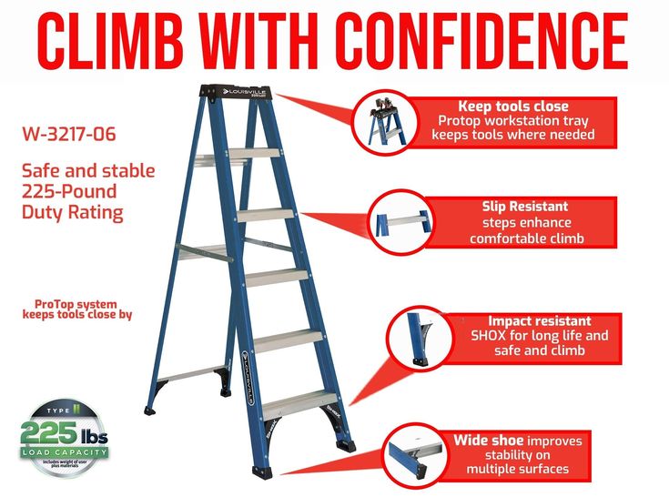 Louisville Ladder 6' Fiberglass Step Ladder, 10' Reach, 225 lbs Load Capacity, W-3217-06