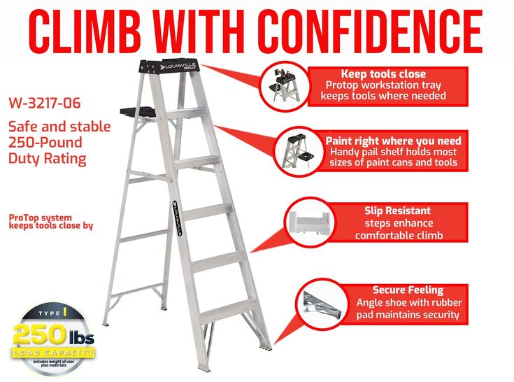 Louisville Ladder 6' Aluminum Step Ladder, 10' Reach, 250 lbs Load Capacity, W-2112-06S