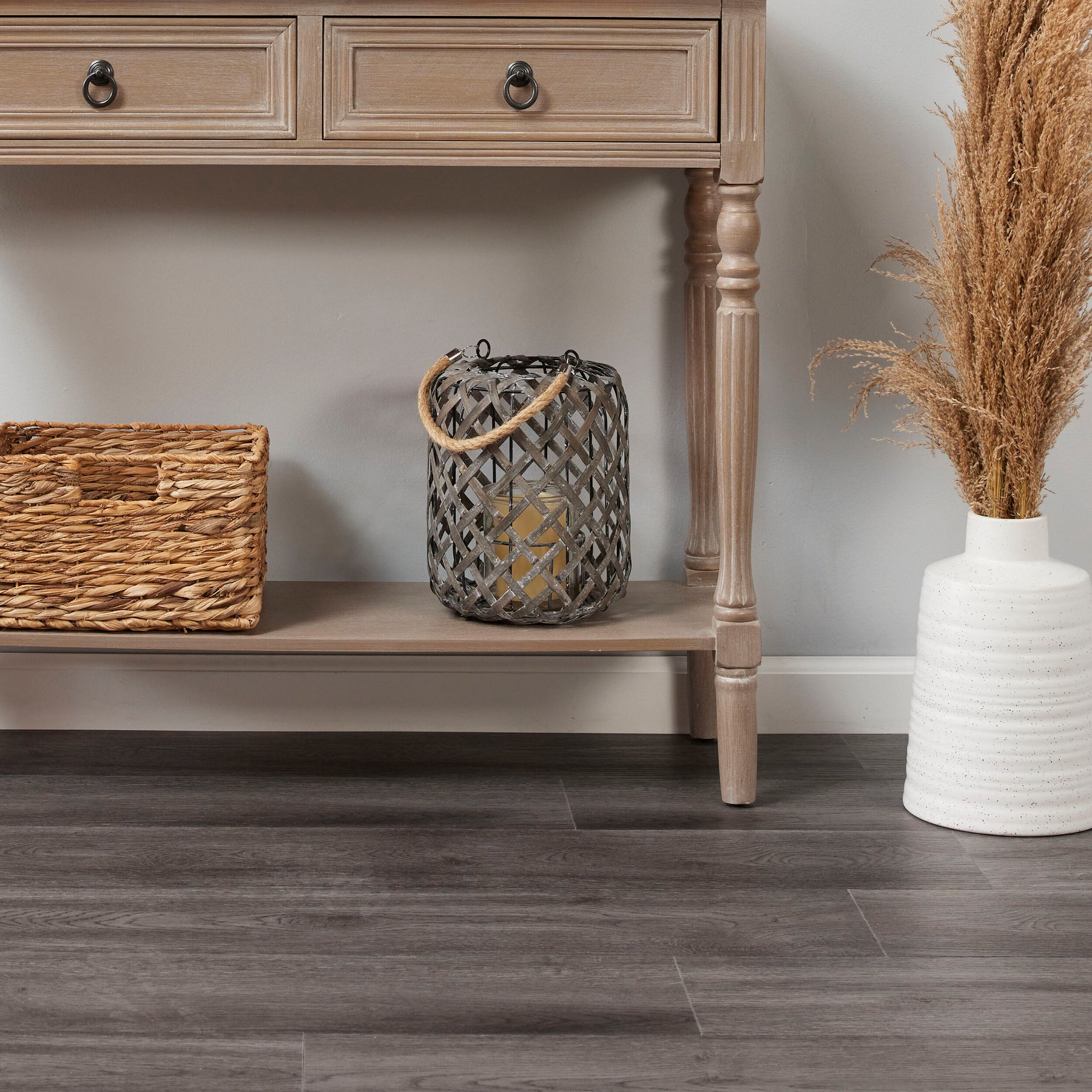 GlueCore in Slate Gray washes a room with a cool, smoky elegance that sharpens every silhouette. The wide planks and refined elm grain bring a tailored, architectural rhythm underfoot. Pair it with warm natural baskets and pale woods for balance, or contrast with matte black metals for drama. It’s a chic foundation that makes everyday living feel distinctly luxurious.