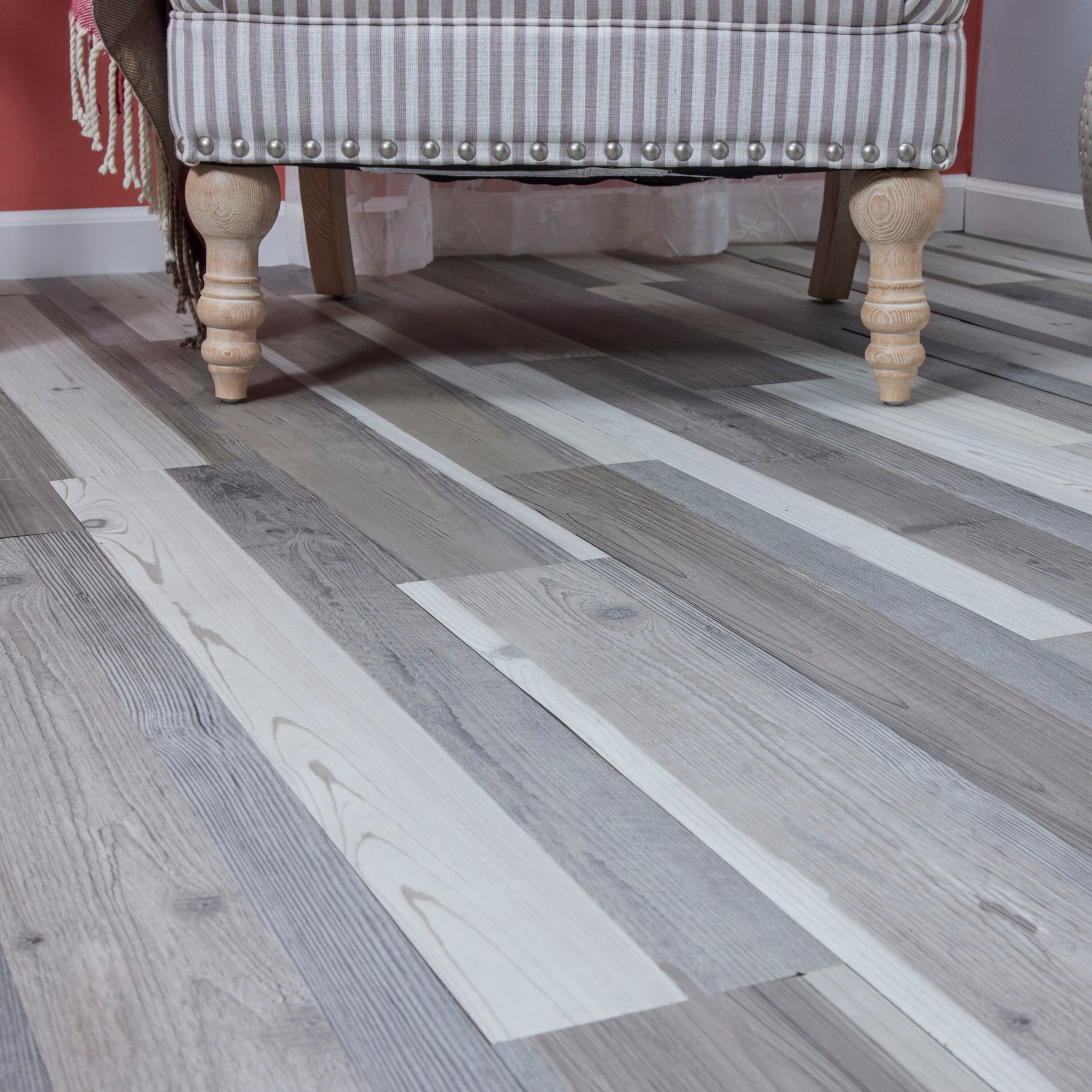 Waterproof Peel-and-Stick Luxury Vinyl Plank Flooring, Reclaimed Gray