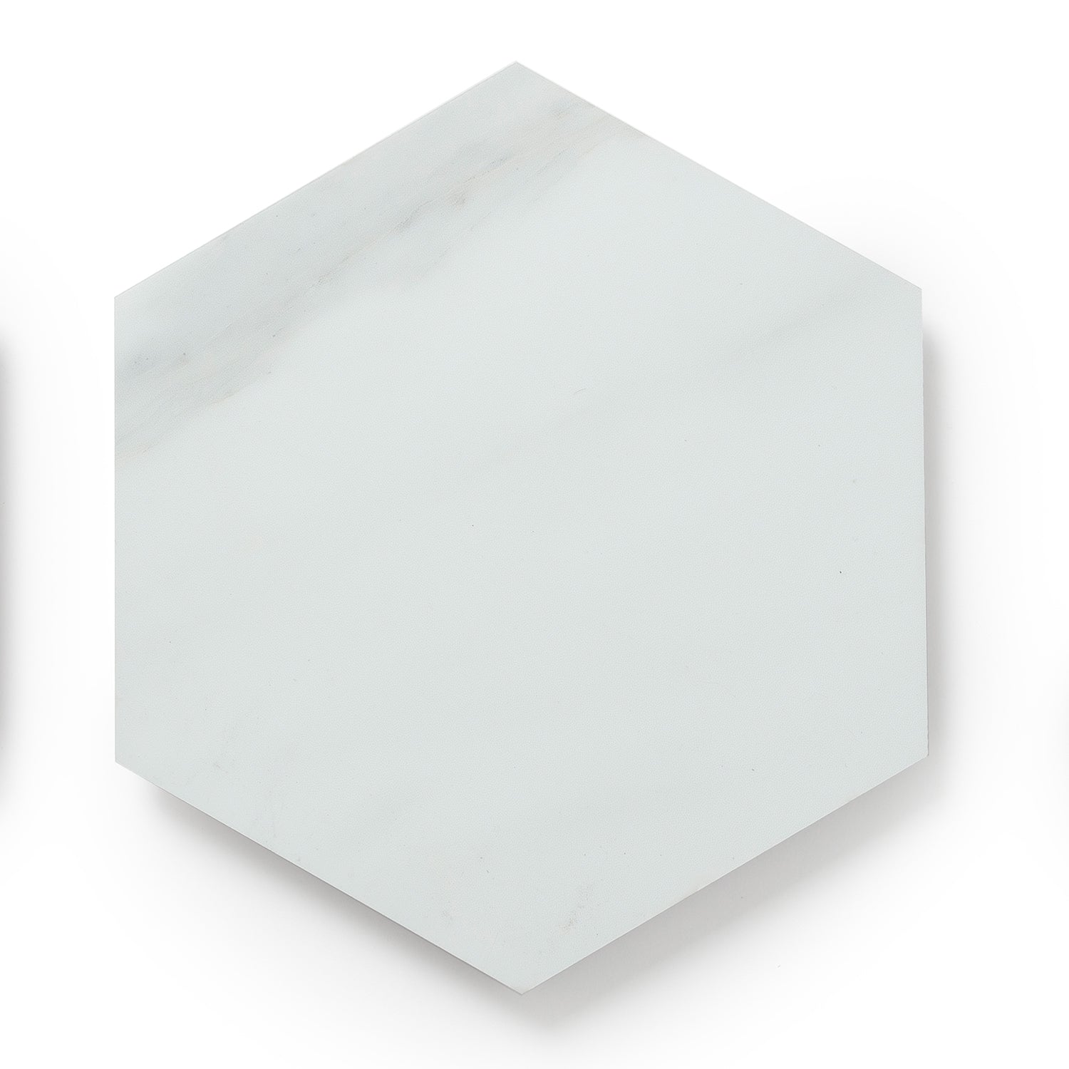 Bring the elegance of marble to high-traffic spaces with Lucida’s MosaiCore Blanco Ibiza hexagon LVT. The 3mm glue-down tile features a durable 28 mil wear layer, waterproof construction, and a matte, stippled surface ideal for commercial and residential installations.