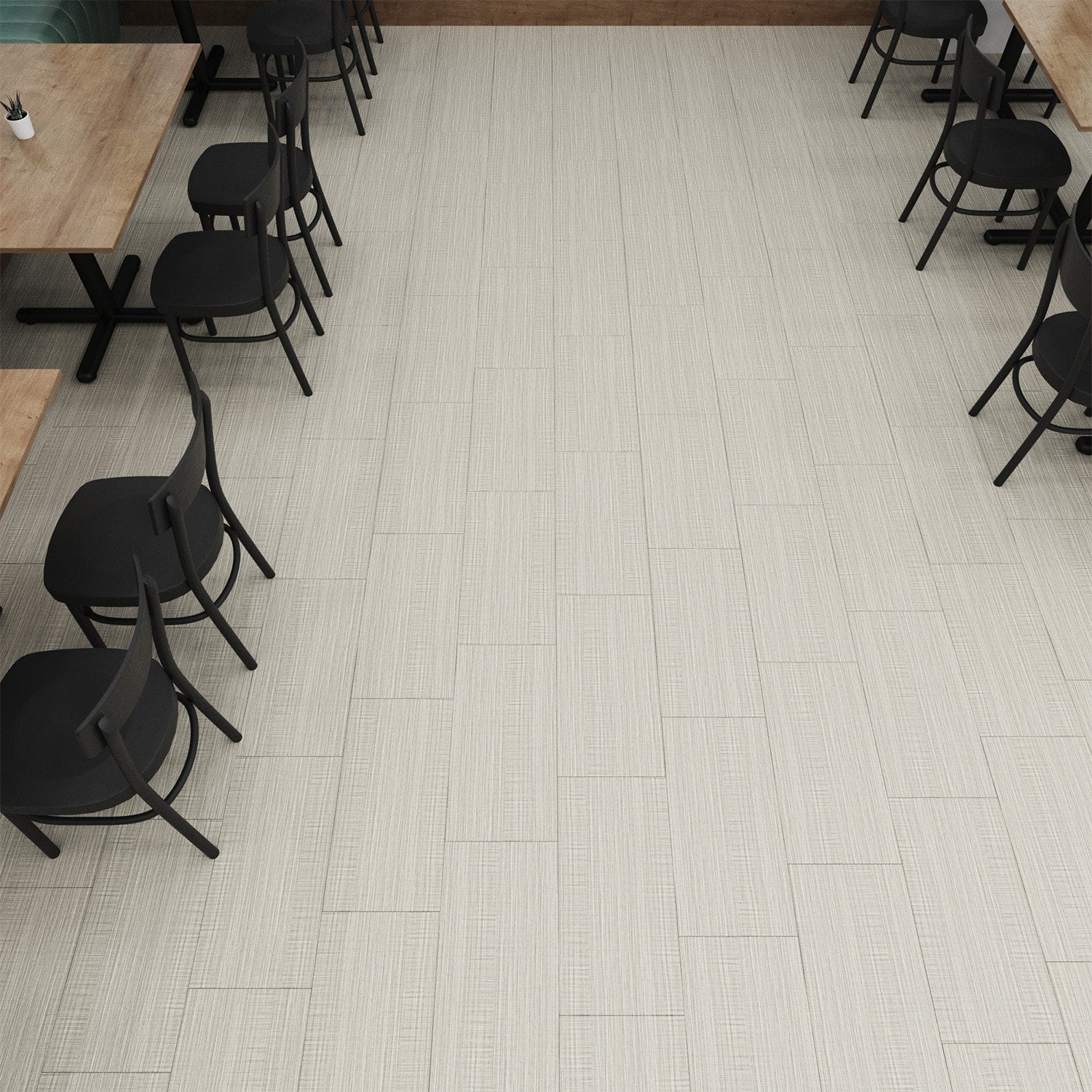 A durable, fabric-inspired LVT designed for heavy-traffic spaces. Each 12-in x 24-in glue-down tile features a 28-mil wear layer with ceramic bead finish, delivering waterproof protection and long-lasting style for commercial or residential interiors.